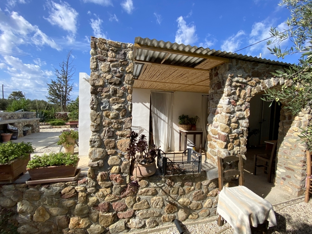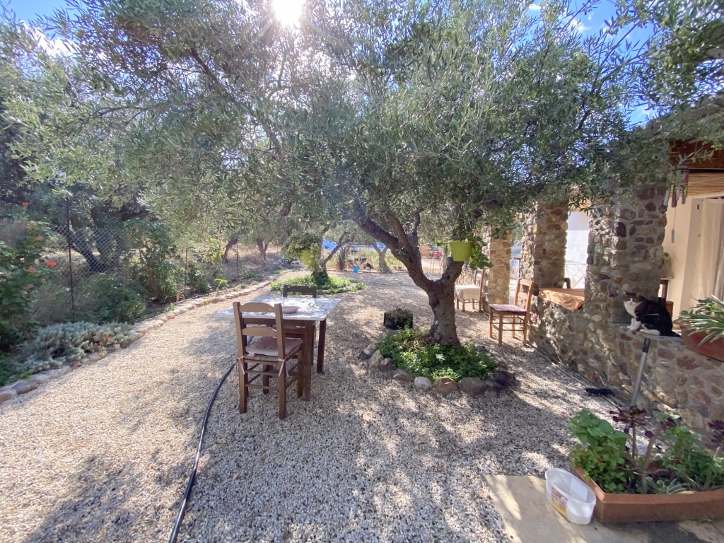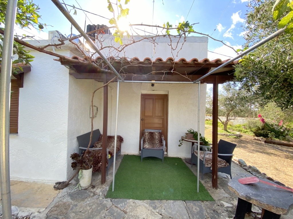 A detached house of 73m2 within a plot of 1.900m2 is available for sale in the area of Sisi in Lassithi. It is located 1,5km from the beach, 14km from Neapoli and 52km from the International Airport of Heraklion. It consists of a living room with wood stove installation, a kitchen, two bedrooms and a bathroom. Externally it has one more bedroom and a storage room, while it is surrounded by spacious verandas and garden with trees and flowers. The land has also 34 olive trees, as well as available capacity for horticultural cultivation. The house is equipped with solar, roof fans in two bedrooms and electric water heater. The house is located in a quiet area, while it offers view at the countryside and the mountains. It is a good investment choice for your permanent or holiday residence.
