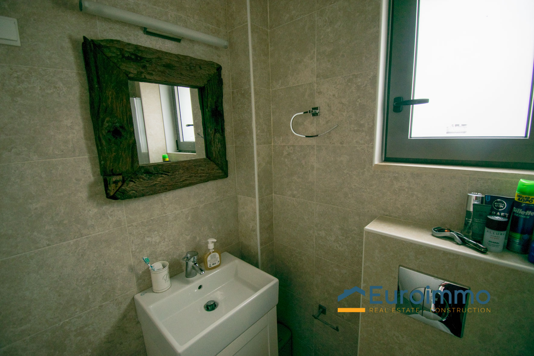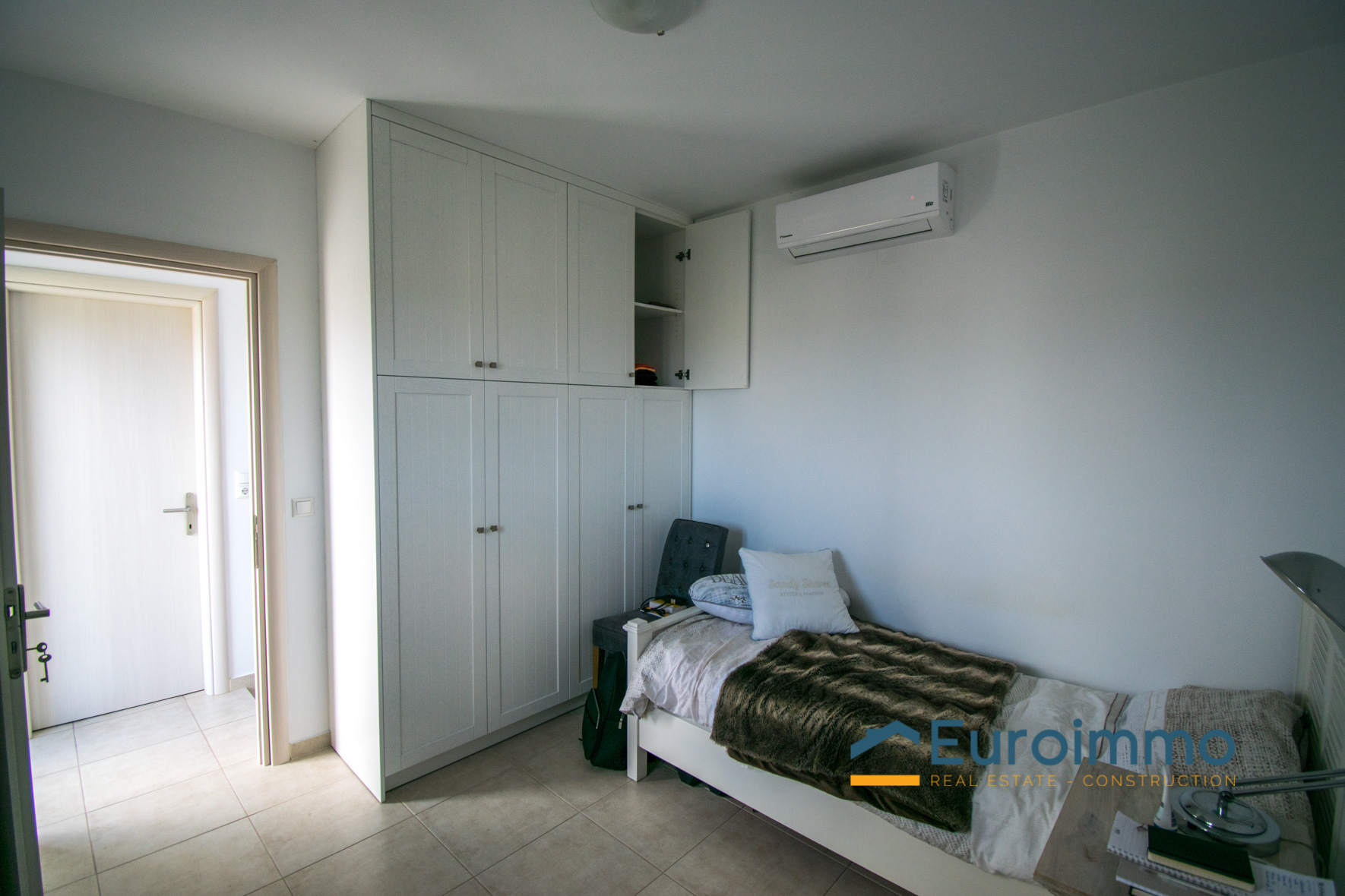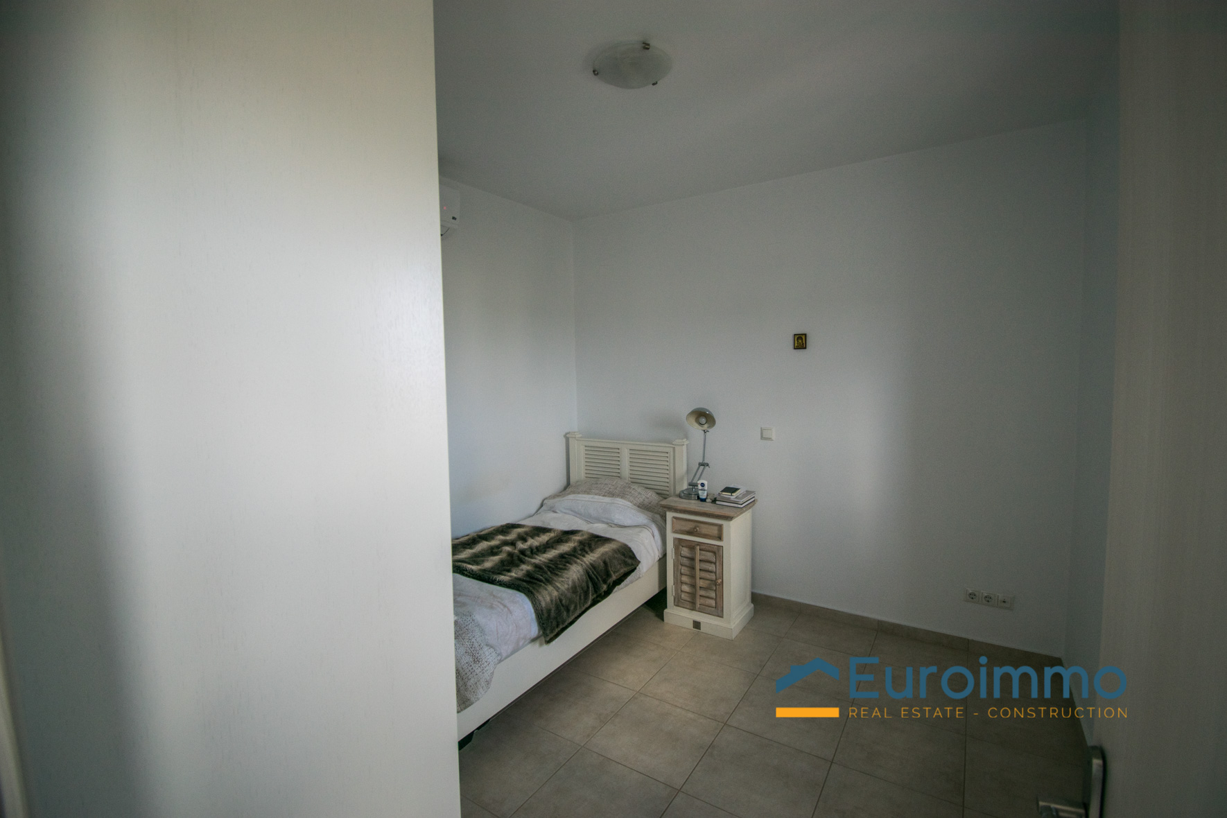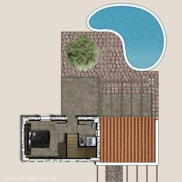 First Floor: Double bedroom with bathroom and a large terrace overlooking the garden, pool and the sea.