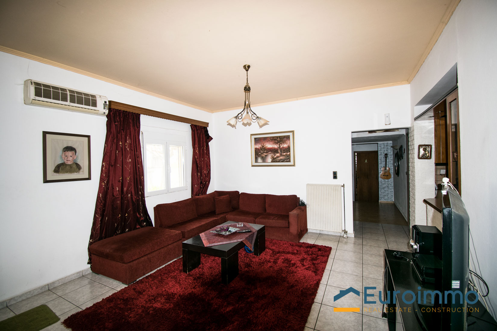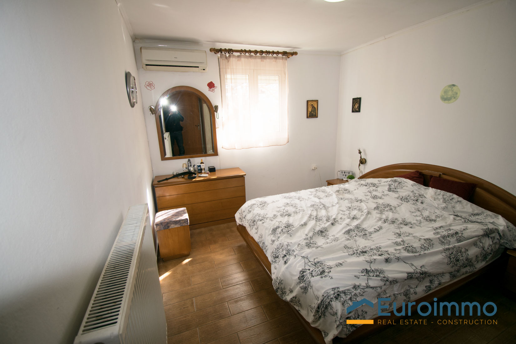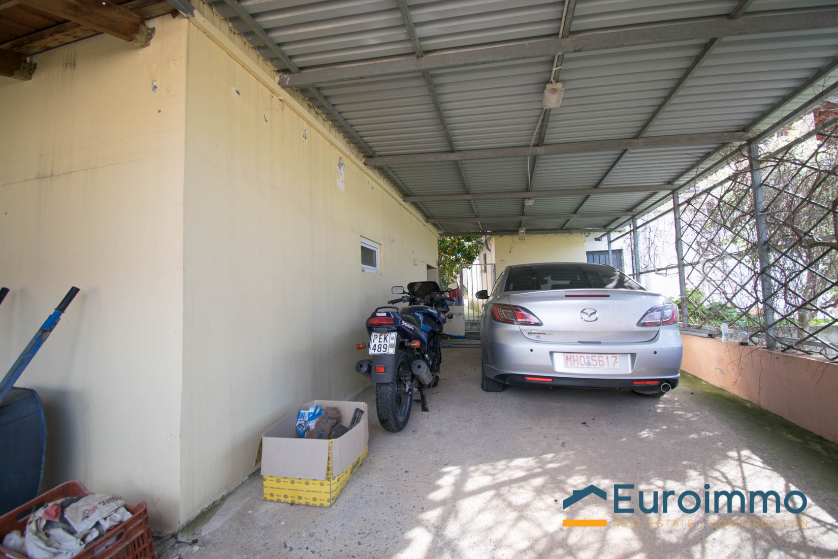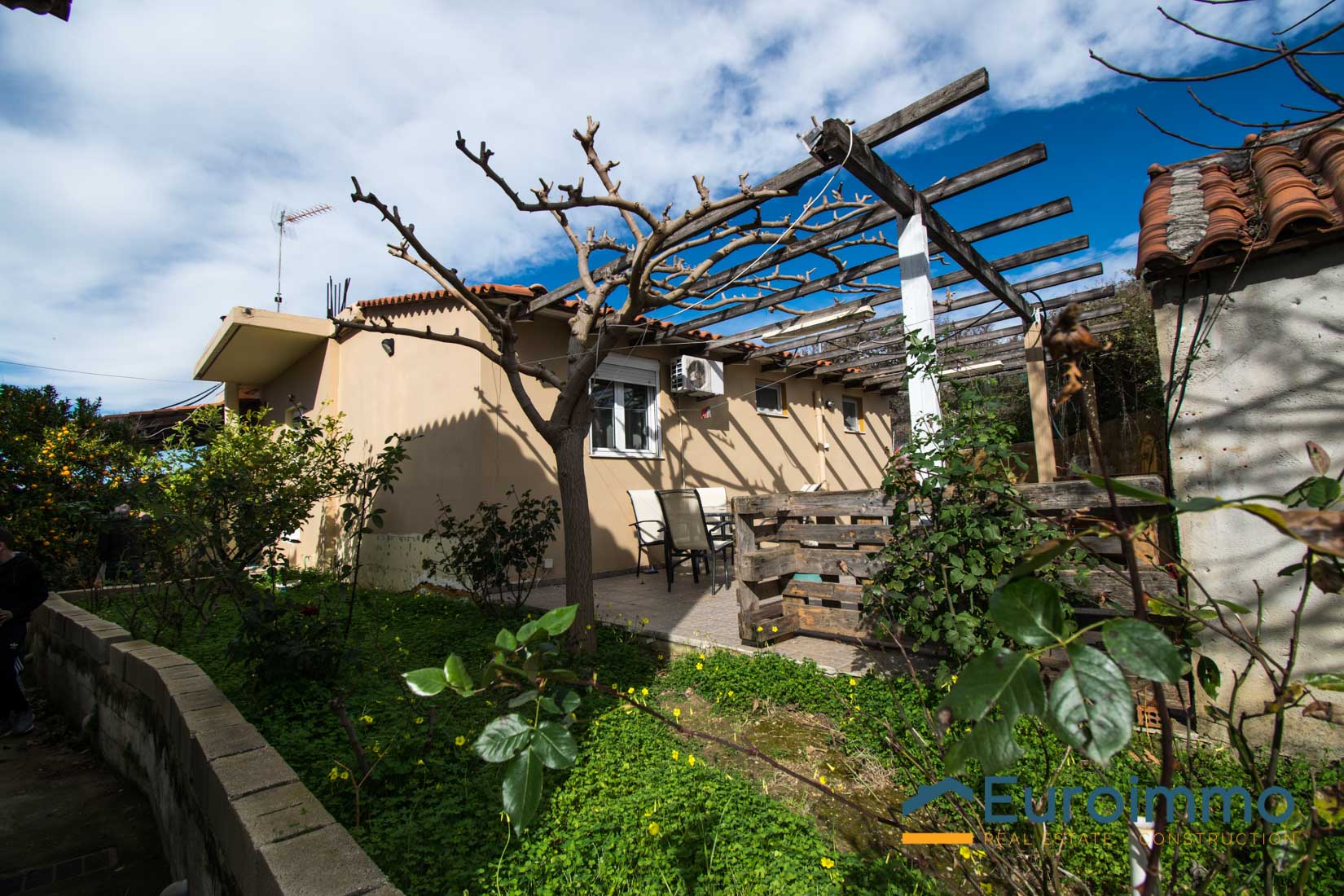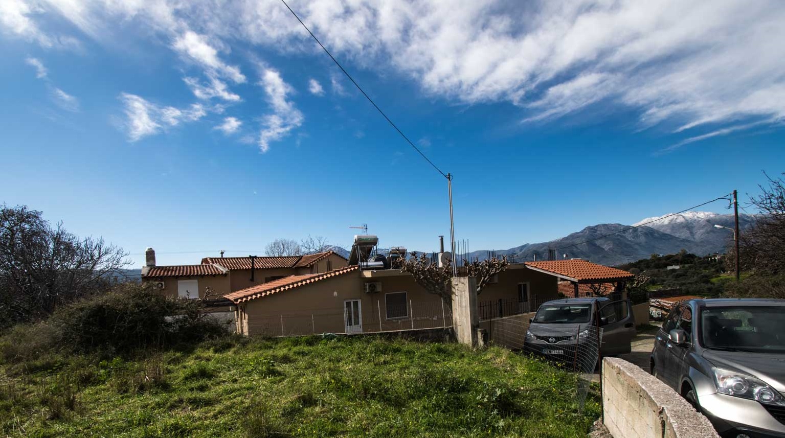 The house has a total area of 140sq.m. , all ata ground level and is built on a plot of 700sq.m.. Comprises, An open plan area, with kitchen, living and dinning room, a spearate living room with a fire place and three bedrooms and a store room, a spacious bathroom and 2 storages at lower level, where the central heating boiler and tank are insltalled. There is a fire place are A/C units in the main bedroom. At the outside, there are three spacious terraces, on the north, south and east side of the house and a large garden with orange , lemon and mandarin trees, all in production. Also has an external coverred parking area. The house is located at the edge of a village 14km to the town of Rethymnon and enjoys landscape views and views to the White mountains , in a distance of 5kms from the beach of Gerani and there are mini markets , super markets and tavernas in the closeby villages.It is fully habitable nad ready to move into.