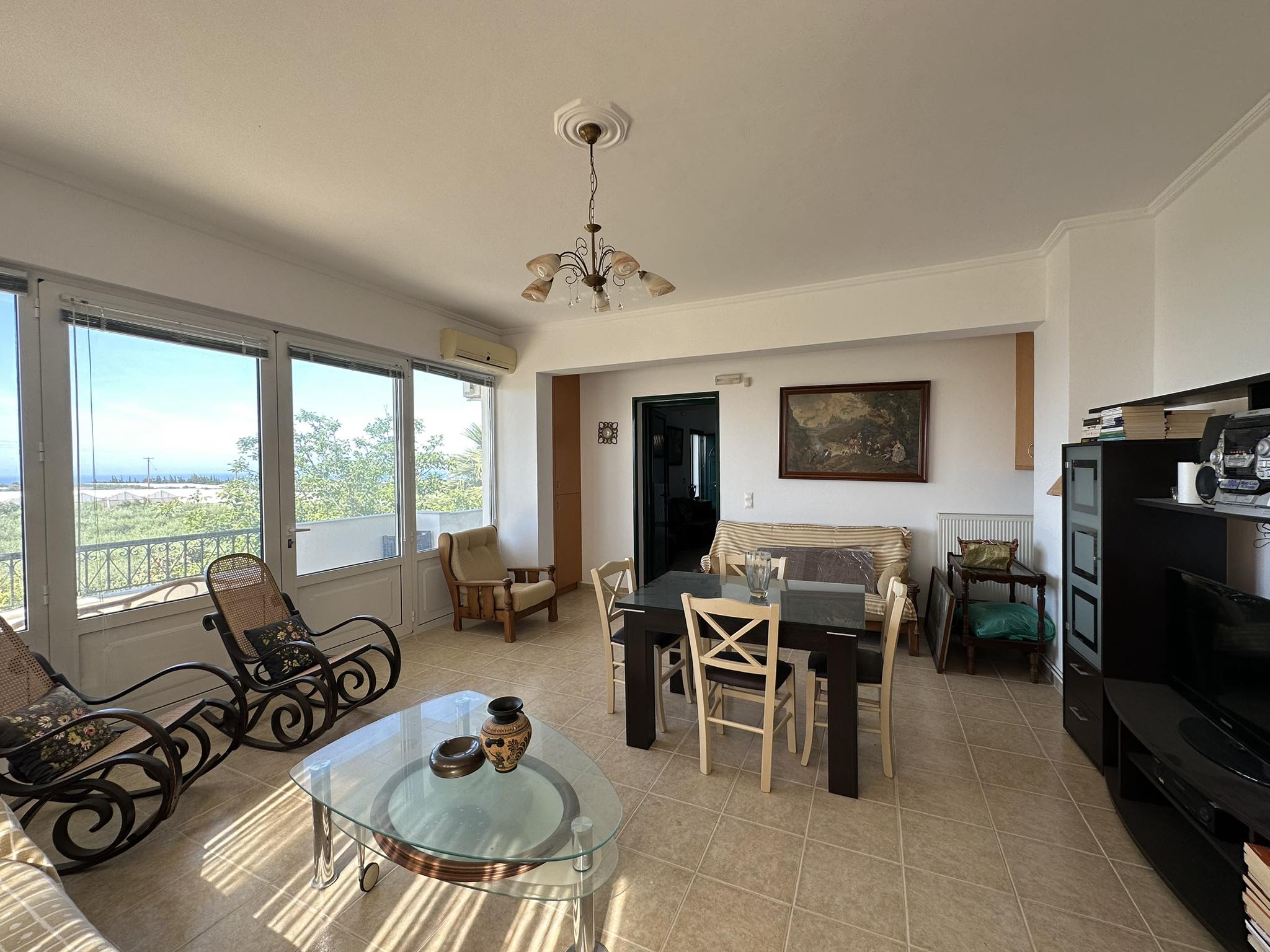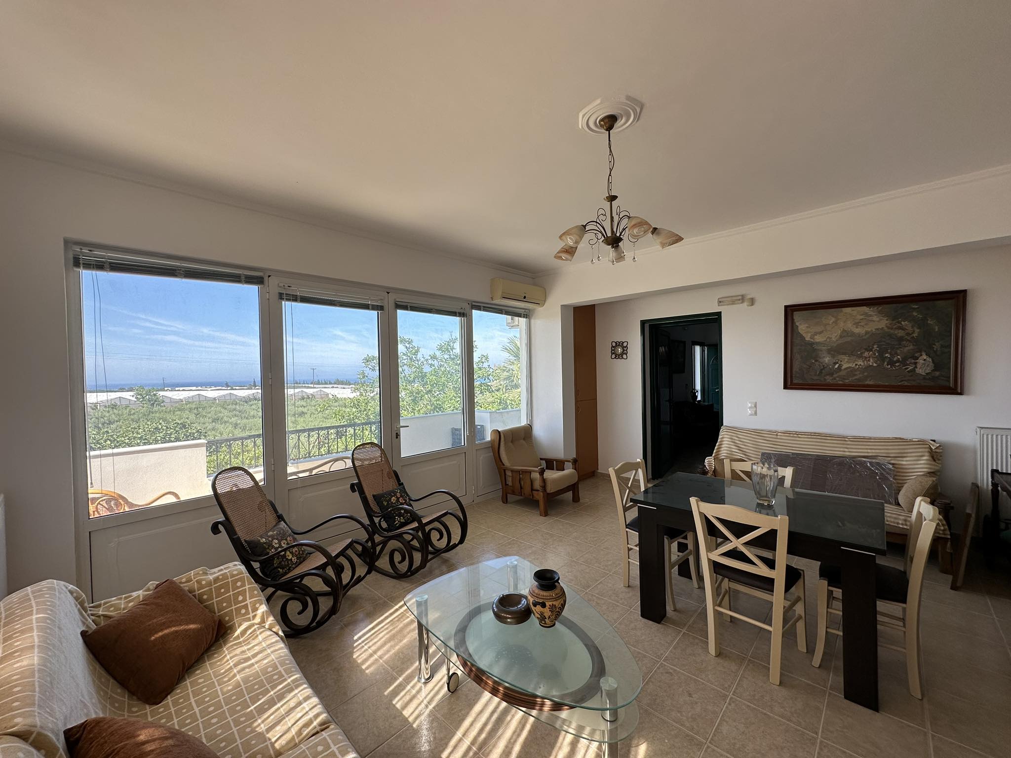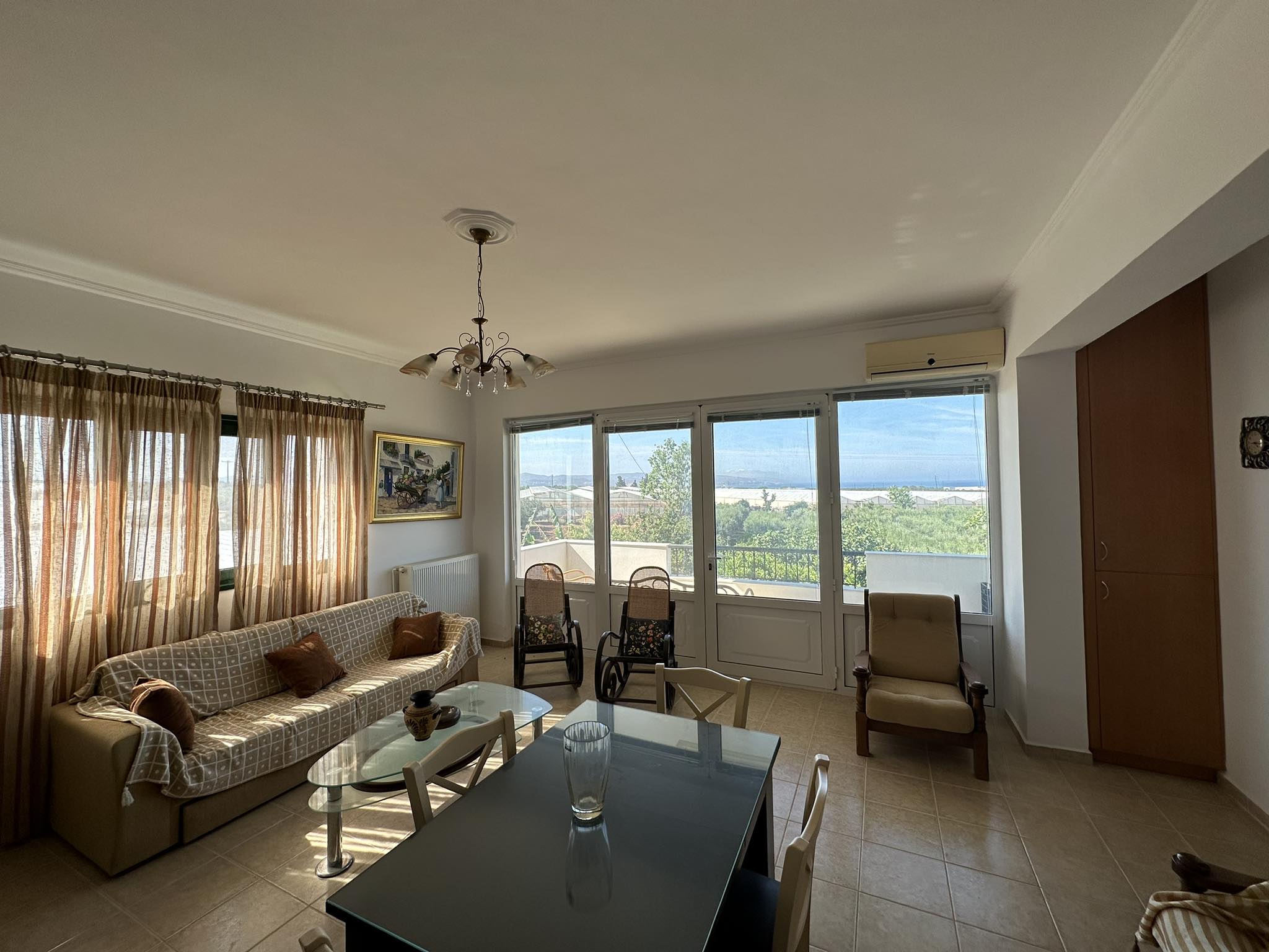 Una grande tenuta di 277m2 su un terreno di 4.155m2 vicino al villaggio di Klima. Gli edifici a due piani sono composti da due case, un deposito e un garage. Al piano terra un open space di cucina-pranzo e soggiorno con camino, misura 40 mq. Un bagno esterno indipendente con vasca. Una terrazza coperta con fiori stabili perfetta per sedersi all'aperto. Al livello superiore di 40 mq, attraverso una scala esterna coperta, dove si trovano due camere da letto e un bagno con doccia. Al secondo edificio, unito con una scala coperta nel mezzo, Al livello superiore un'ampia cucina componibile completamente attrezzata, una camera matrimoniale, un bagno con vasca lavanderia, uno spazio aperto di zona pranzo e soggiorno con camino e ampie porte finestre sul balcone con splendida vista sul mare e sulla campagna. Al piano terra un garage di 62 mq con porta basculante elettrica e ripostiglio di 32 mq. Si accede alla proprietà tramite una tranquilla strada agricola. La posizione della proprietà è tranquilla tra la campagna e offre privacy e vista sul mare in lontananza. Un grande appezzamento di terreno di oltre 4.000 m2 con alberi di ulivo che produce una grande quantità di olio d'oliva di buona qualità. Tutta la proprietà è recintata con muri e circondata da una recinzione. Questa proprietà ha il potenziale per essere una bella casa. È ideale per l'agricoltura o un progetto agricolo. La proprietà condivide incantevoli viste sul mare e sulla campagna. La posizione è ideale per chi cerca pace e tranquillità in campagna. Casa A Piano terra
