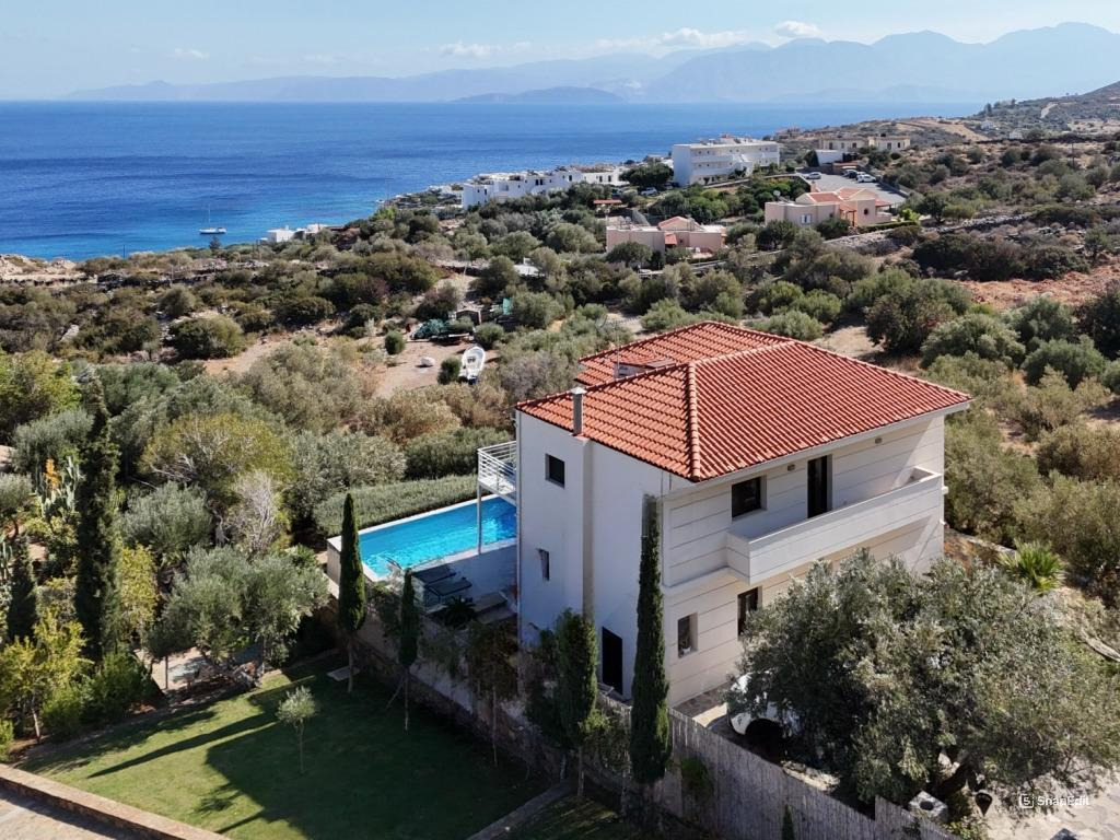 Eine zweistöckige Luxusvilla steht 1 km vom kosmopolitischen Ferienort Elounda, 7 km vom malerischen Aghios Nikolaos, der Hauptstadt Ostkretas und nur 300 m vom Meer entfernt, zum Verkauf. Früher war es ein kleines Wohnhaus, das zu einem hohen Standard rekonstruiert wurde, um diese schöne Villa in einer prestigeträchtigen Lage zu produzieren. Die Unterkunft besteht aus einer geräumigen offenen Lounge, einem Essbereich und einer voll ausgestatteten Küche von höchster Qualität, die sich zu einer Terrasse hin öffnet. Es gibt vier große Einbauschlafzimmer mit Bad, eine Gästetoilette und ausreichend Stauraum. Diese zentral beheizte Villa verfügt über einen eigenen Eingang zum größtenteils aus Stein gepflasterten 750 m² großen Grundstück mit mehr als ausreichenden Parkplätzen, einem Gartenbereich, einem Grill und einem Infinity-Pool mit Blick auf die Bucht. Von fast allen Aspekten und vor allem von den Balkonen aus hat man einen herrlichen Blick über die Landschaft bis zu den Buchten Mirabello und Elounda. Auch ein Apartment mit einem Schlafzimmer und separatem Eingang ist elegant eingerichtet und komplett ausgestattet. Erbaut in einer der prestigeträchtigsten Gegenden Kretas, ist dies ein Haus oder eine Ferienvilla, auf die jeder Eigentümer stolz sein würde.