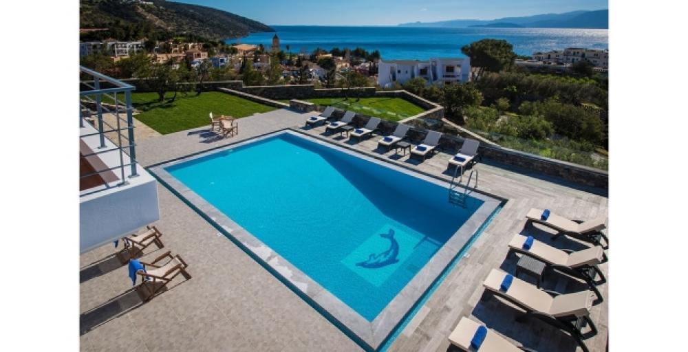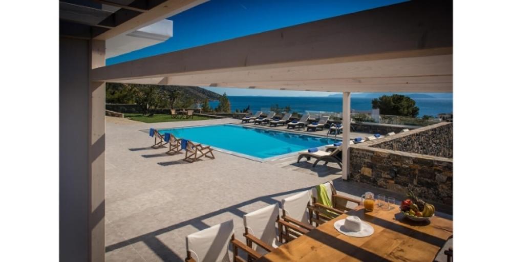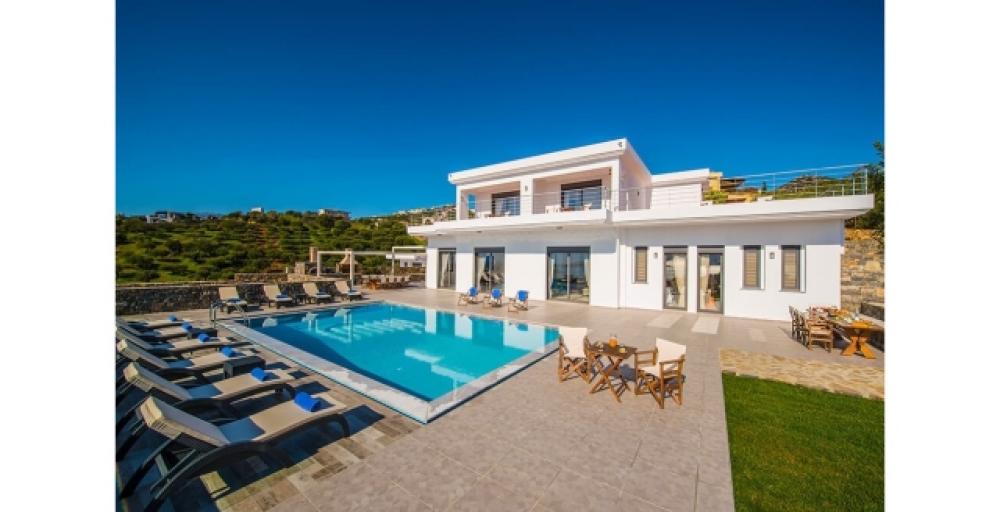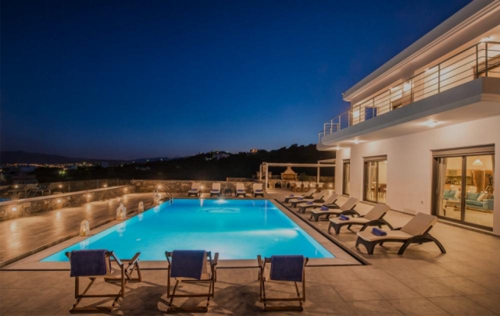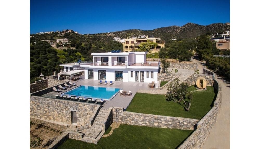 Eine luxuriöse Villa von 307 m2 steht in einzigartiger Lage zum Verkauf, nur 400 m vom Strand und 3 km vom Zentrum von Agios Nikolaos entfernt. Die Villa befindet sich auf zwei Ebenen an einem privilegierten Ort, einem Hügel, und bietet einen atemberaubenden Panoramablick auf die Bucht von Merabello. Im Erdgeschoss befindet sich ein geräumiger offener Bereich, in dem sich das Wohnzimmer mit Kamin und großen Öffnungen befindet, die nach außen führen. Auf der gleichen Ebene befinden sich die voll ausgestattete Küche und drei Schlafzimmer. Eines der Schlafzimmer verfügt über ein eigenes Bad, während es ein zusätzliches Badezimmer gibt, das sich die beiden Schlafzimmer teilen. Wenn Sie die obere Ebene mit einem Aufzug oder einer Treppe erreichen, finden Sie möglicherweise die beiden Hauptschlafzimmer. Jedes von ihnen verfügt über ein eigenes Bad mit Whirlpool und einen begehbaren Kleiderschrank. Die Zimmer haben direkten Zugang zu einer großen möblierten Veranda von 140 m2 mit Blick auf den Pool und den Hafen von Agios Nikolaos. Jedes Zimmer der Villa ist elegant eingerichtet und mit einer Klimaanlage ausgestattet. Auf dem 1.500 m² großen Grundstück befinden sich ein 68 m² großer Pool, ein 270 m² großer Rasengarten, ein Grill- und Essbereich sowie eine Außensauna. Diese einzigartige Villa ist ideal für Ruhe in der Nähe der Annehmlichkeiten der Stadt.