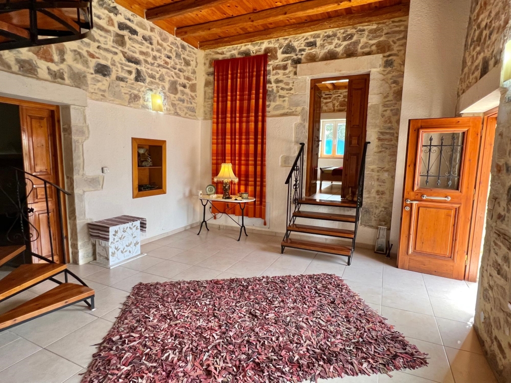 Zum Verkauf steht ein möbliertes traditionelles Haus mit 250 m² auf einem Grundstück von 257 m². Es liegt 3 km vom Meer, 4 km von der malerischen Stadt Agios Nikolaos und 69 km vom internationalen Flughafen Heraklion entfernt. Dieses renovierte Haus bietet eine wunderschöne Aussicht auf die Mirabello-Bucht und die Stadt und erstreckt sich über zwei Ebenen, wobei seine traditionellen Merkmale erhalten geblieben sind. Das Erdgeschoss öffnet sich zu einem Flur, in dem sich zwei große Schlafzimmer mit eigenen Badezimmern befinden, von denen ein Badezimmer eine Badewanne und das andere eine Dusche hat. Eine Wendeltreppe führt in den ersten Stock, wo sich ein offenes Wohnzimmer mit Esszimmer und Herd sowie eine voll ausgestattete Küche befinden. Auf derselben Ebene befinden sich außerdem das Hauptschlafzimmer mit Badezimmer, ein weiteres Schlafzimmer und zwei große Balkone mit wunderschöner Aussicht auf das Meer und die Stadt. Es verfügt auch über die Anschlüsse für Zentralheizung, Solarpanel und Doppelverglasung. Draußen gibt es einen angelegten Innenhof mit Steingrill und einen offenen Parkplatz für ein Fahrzeug. Es handelt sich sicherlich um ein schönes Haus, das sich ideal als Dauer- oder Ferienhaus eignet und in einer ruhigen Umgebung liegt und seinen Besitzern Komfort und Ruhe bietet.