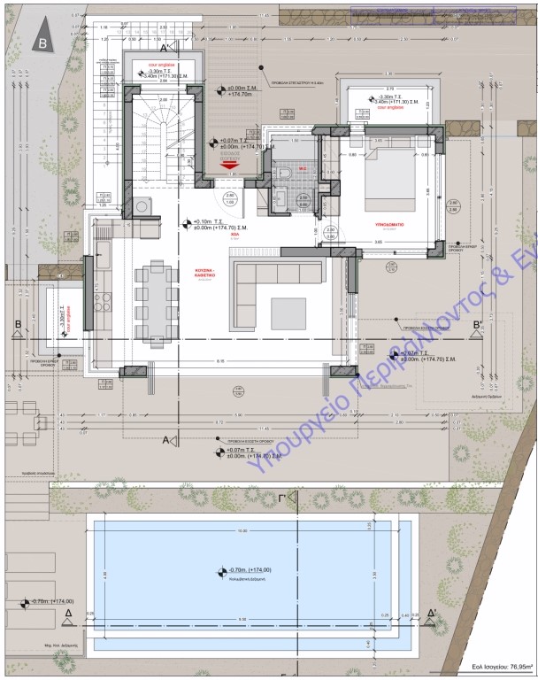 Das zum Verkauf stehende Grundstück mit 770 m² liegt nur 1 km vom Meer, 4 km von Elounda und 6 km von der Stadt Agios Nikolaos, der Hauptstadt Ostkretas, entfernt. Es grenzt an eine Landstraße und hat Wasser- und Stromversorgung in unmittelbarer Nähe. Es ist flach mit leichten Neigungen und bietet als großen Vorteil die Genehmigung für den Bau einer zweistöckigen Villa mit 222 m² plus Keller mit einem privaten Swimmingpool mit 40 m². Das Erdgeschoss mit 76,95 m² besteht aus einem Wohnzimmer, Esszimmer, Küche, einem Schlafzimmer und einem Badezimmer. Der erste Stock mit 68,76 m² bietet 2 Schlafzimmer mit eigenen Badezimmern. Im Keller befinden sich die Hauswirtschaftsräume. All dies, zusammen mit dem einzigartigen Panoramablick auf Agios Nikolaos, die Mirabello-Bucht und die Berge in der Ferne, macht es zu einer der besten Investitionsmöglichkeiten.