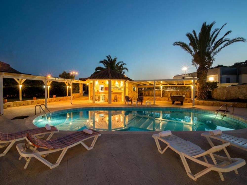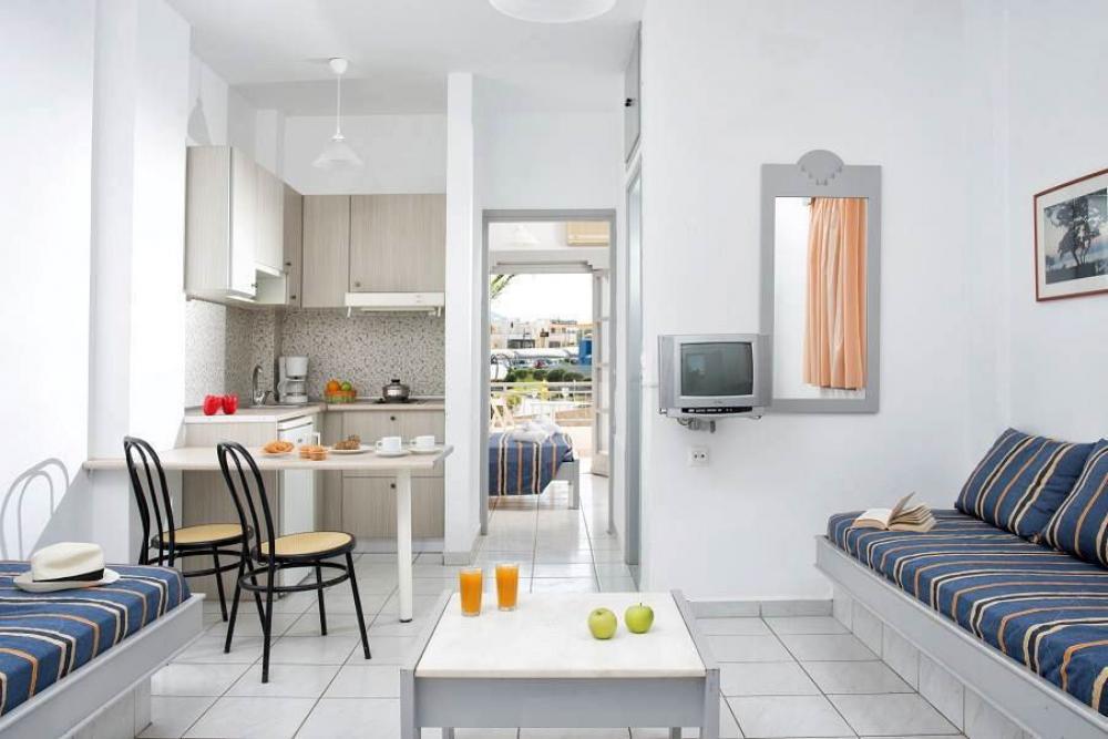 Α complex of 13 apartments in two buildings of 200m2 each one, is available for sale. It is just 600 meters from the sandy beach of Hersonissos in Crete and includes a swimming pool with sun terrace and a snack bar. It is located in a plot of 4.000 m2 which is surrounded by landscaped gardens, parking and offers units with catering and balconies or terraces overlooking the pool.The distance to the city and the port of Heraklion is just 27 km away. The bright air-conditioned studios and apartments have a kitchenette with dining area and bathroom with shower.In addition there are fridge, cooking hobs and TV. It is a worthwhile investment in a popular area.