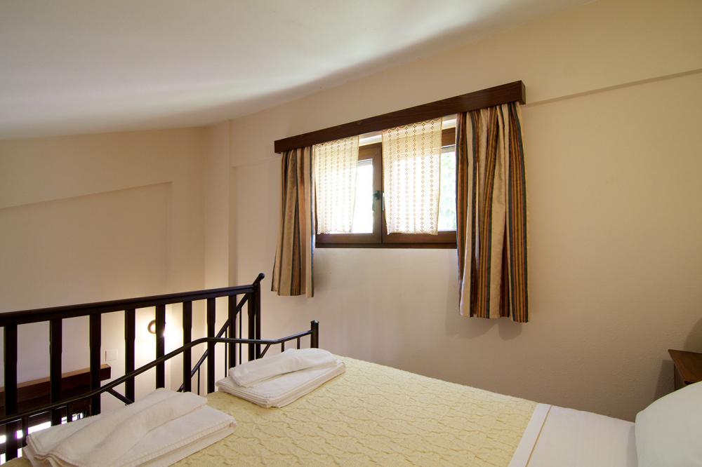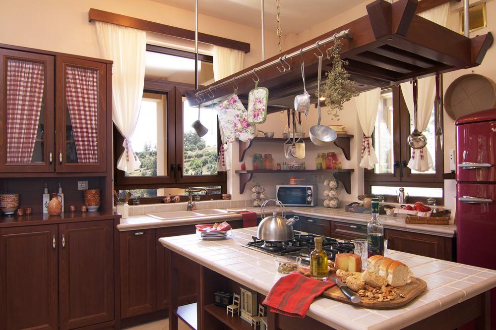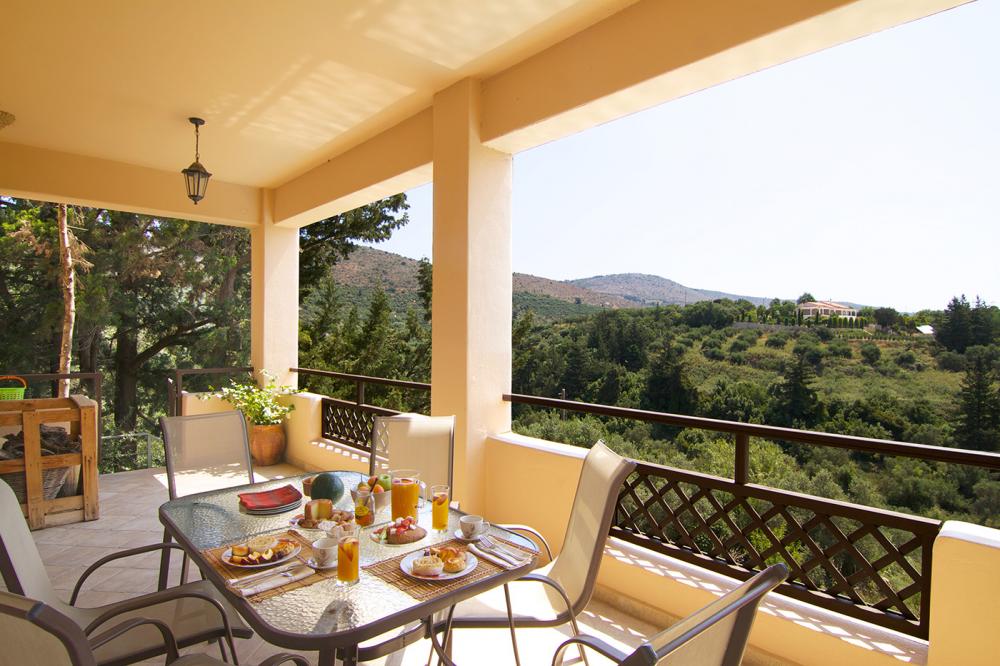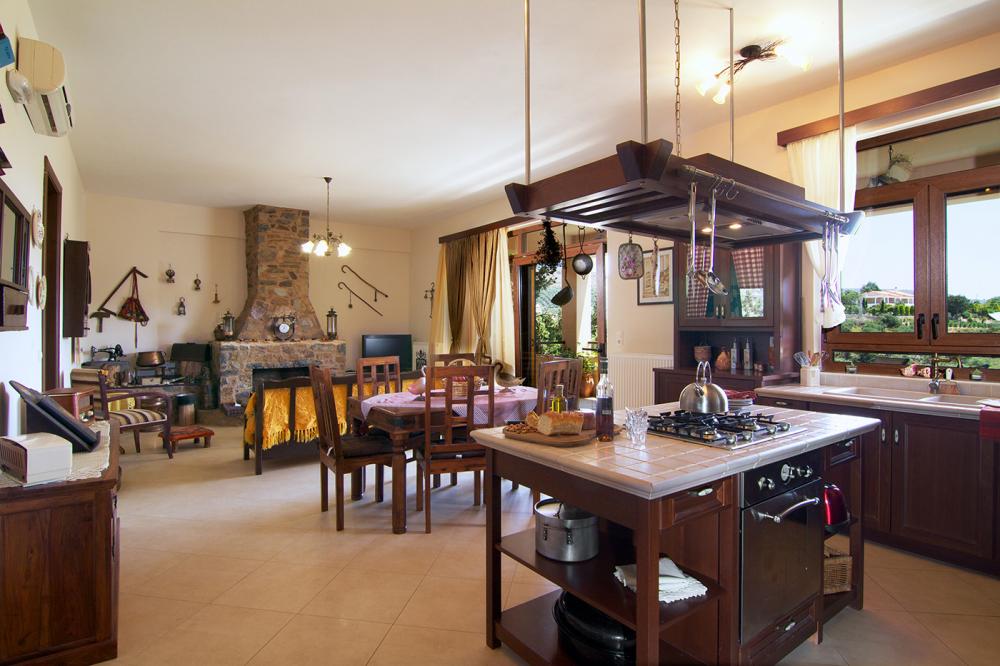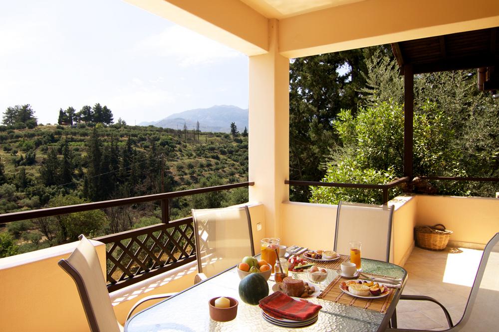On entrance to the villa you will find a spacious open plan area with a fully equipped authentic kitchen, the living room area with satellite HDTV and the indoor dining table! From the living room area, you have direct access to the balcony which offers great views of the landscape.