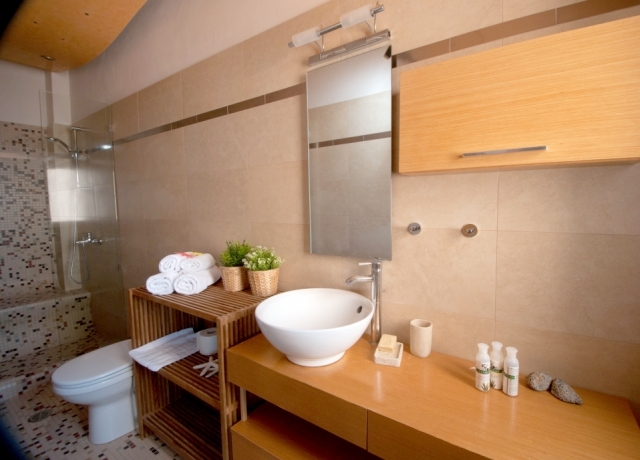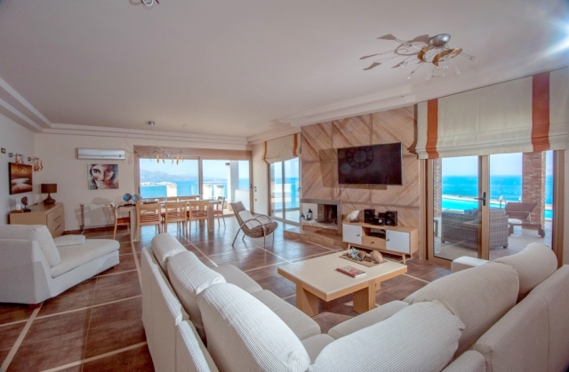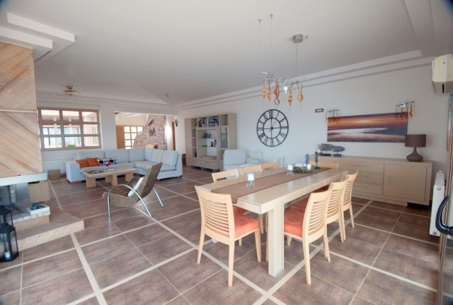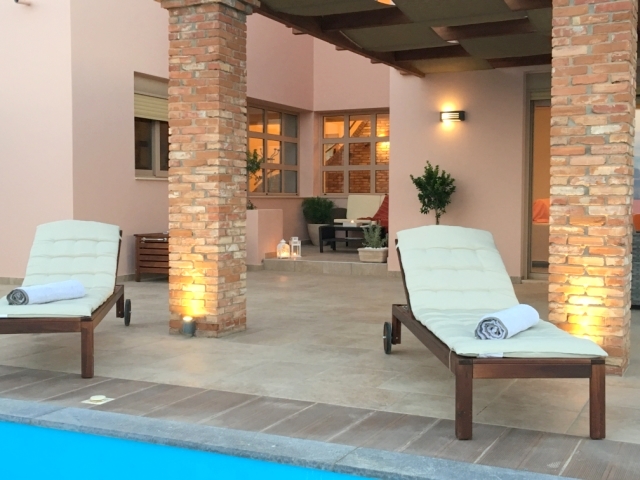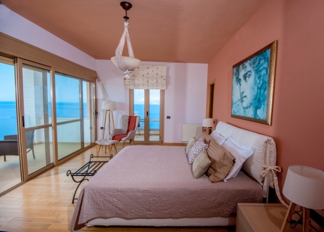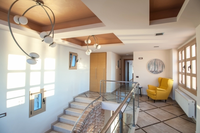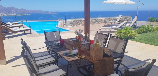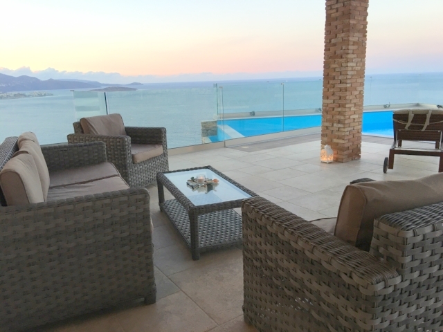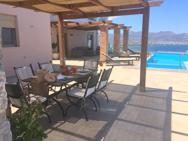 Furnished delightful modern villa of 340m2 is available for sale just 300 meters from the sea, 4km from scenic Agios Nikolaos and 69km from Heraklion International Airport. Within a land plot of 3.300 m² offers wide and unobstructed views of Mirabello Bay and the distant mountains. The ground floor opens in a hall with a characteristic stone staircase and consists of a living room with a modern fireplace, a dining room opening onto a large veranda, a separate kitchen, an office room, a laundry room and a W.C. The staircase leads to the upper floor where it consists of the master bedroom with two wardrobes and an internal bathroom with shower, three comfortable bedrooms and a bathroom with a hydromassage bath. In the basement there is an unfinished guesthouse with an independent entrance that has an open plan kitchen - living room, two bedrooms and a bathroom. Designed according to the specifications of luxurious residence, it has all the modern comforts such as: air conditioning, solar heating, central heating, alarm, entrance phone, satellite and double glazing. Outside there is a living area with a pergola, a swimming pool, parking area, a closed garage of a vehicle and a wonderfully landscaped garden. Essentially contributing to quality excellence and flawless functionality this villa would make everyone proud of his choice.