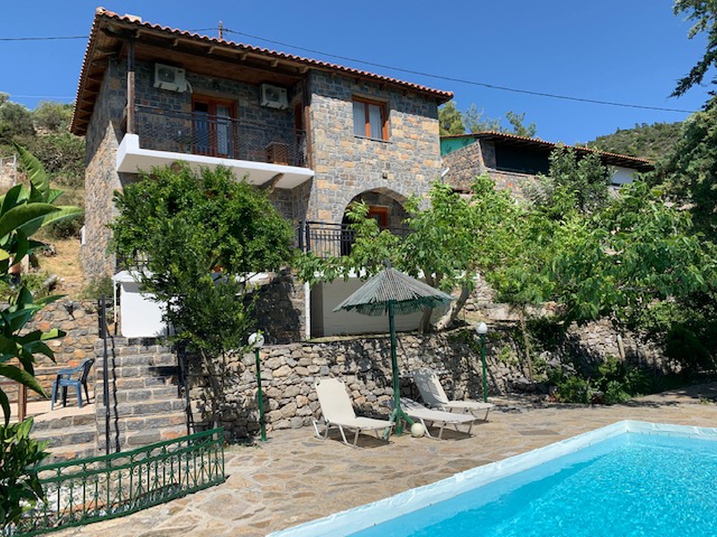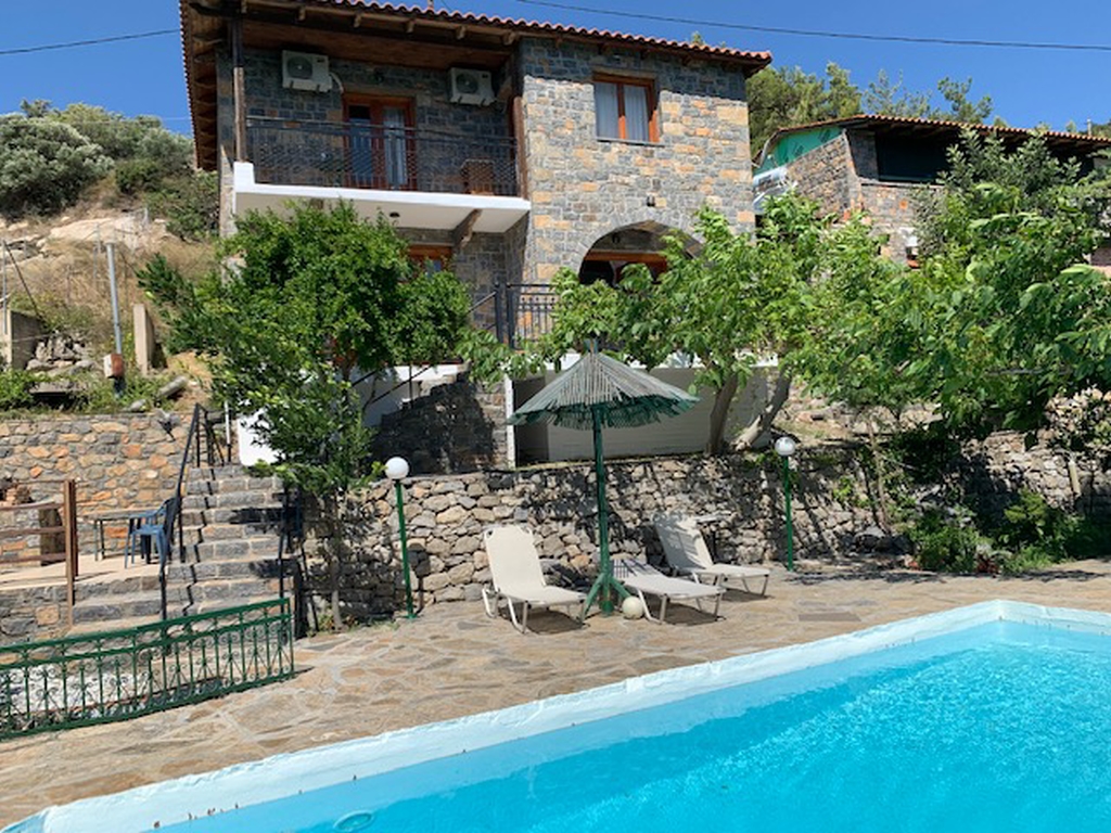 A stone two-storey villa of 110 m2. within a complex of two villas is available for sale. The villa shares the plot of 6.000m2 and is 15 km away from Kalo Chorio and its beaches and 80km from the International Airport of Heraklion. It has an open plan living - dining area with fireplace and kitchen, a bathroom and 2 bedrooms one of which has an internal bathroom. Outside there is a swimming pool with storage space down of it and a private car parking. Provides solar, air conditioning and satellite TV. From the balconies and terraces offers a wonderful view of the countryside. It is a wonderful villa ideal as a permanent or holiday residence.