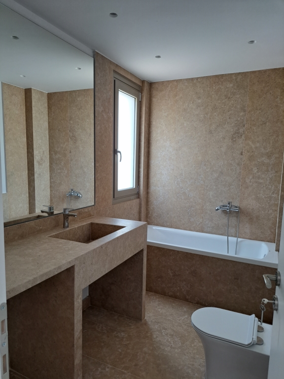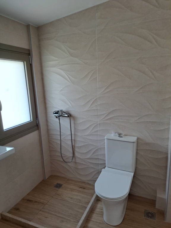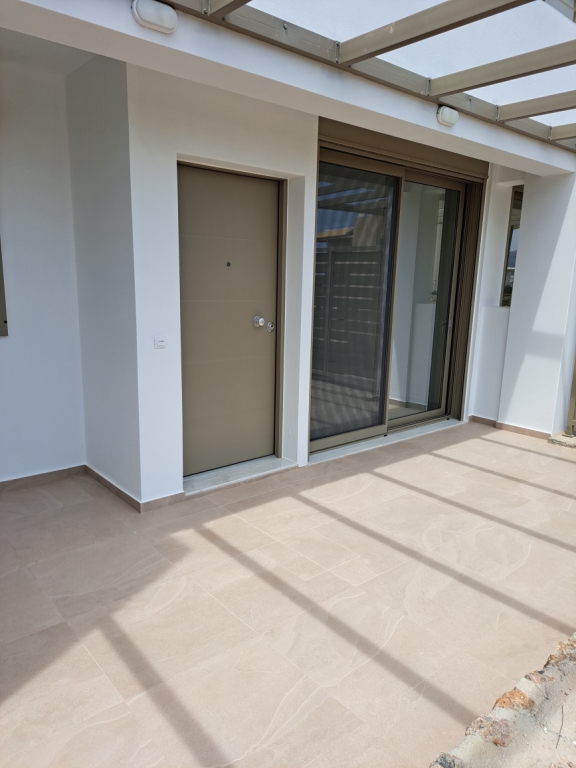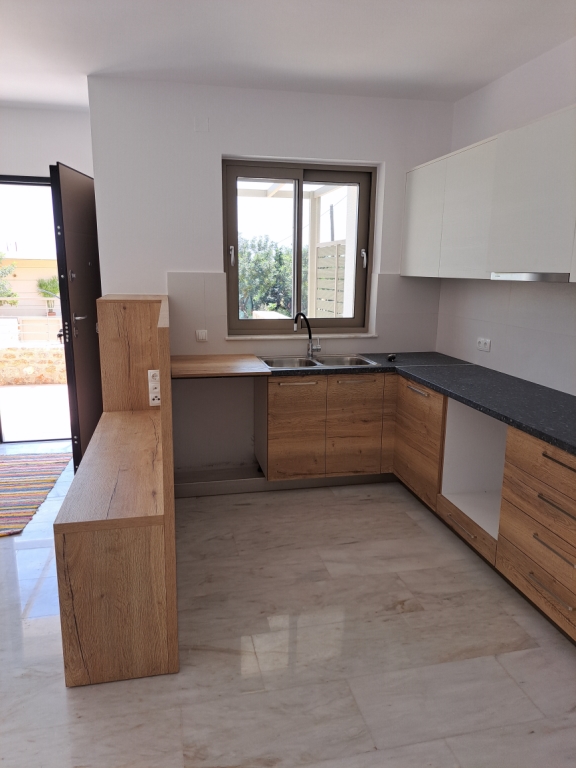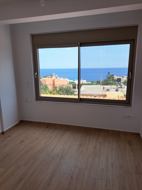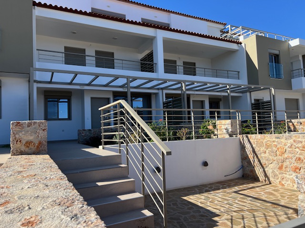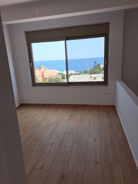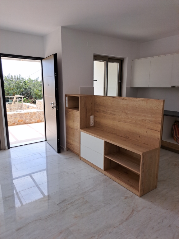 A newly built maisonette of 117m2 within a complex of 5 villas is available for sale in the Ammoudara area of Agios Nikolaos. It is only 500 meters from the sea, 3 km from the town of Agios Nikolaos and 68 km from the international airport of Heraklion. It is developed on two levels where the ground floor opens into a single kitchen living-dining area leading to a terrace. There is also a bathroom with a shower and a storage room. The first floor has two bedrooms that open onto balconies with views of the sea and the surrounding area and a bathroom with a bathtub. Outside and in front of the house there is a small garden and parking for one vehicle. It is a worthy choice for a permanent or holiday home near the sea and the city.