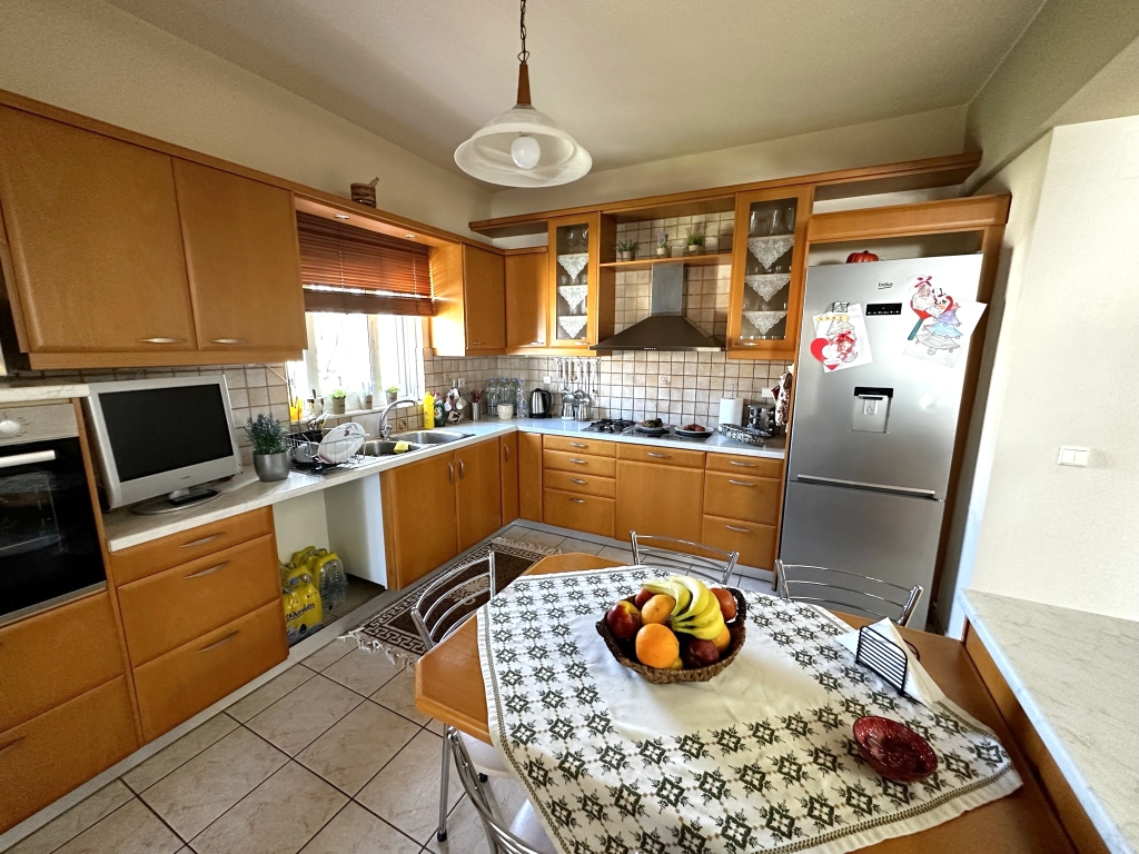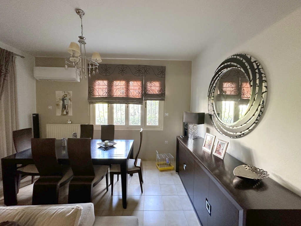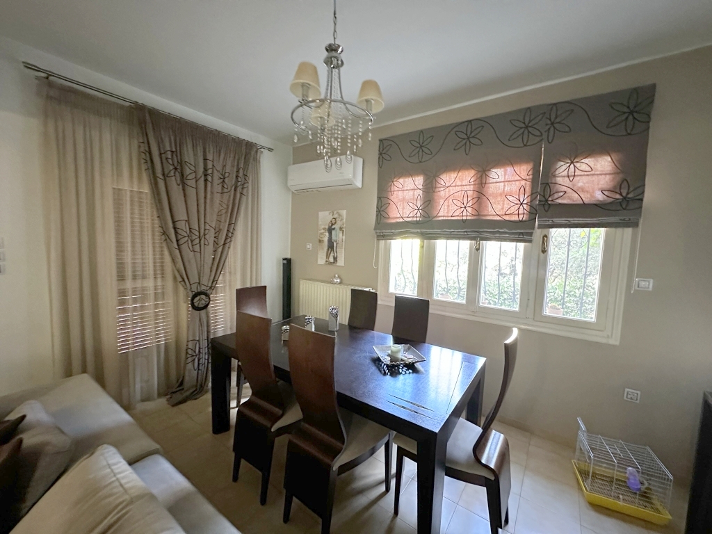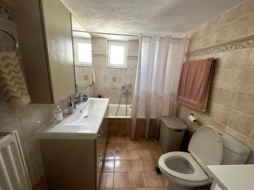 Two spacious apartments are available for sale in the center of Elounda. They are only 500 meters from the beach, 10 km from the town of Agios Nikolaos and 73 km from the International Airport of Heraklion. The ground floor apartment of 120 m2 consists of a single room with a living-dining room with a fireplace, a kitchen, three bedrooms, a bathroom with bathtub and a storage room. An external staircase leads to the first floor apartment of 120m2 which has a comfortable terrace and opens into a single space with living room and dining room, kitchen, three spacious bedrooms with balconies and a comfortable bathroom with bathtub. Outside of the two apartments, there is a space for flowers, a private parking space, a BBQ and a storage room. The house is equipped with central heating, aluminum frames and air conditioning. It is located in the heart of Elounda, close to all amenities, making it a very good investment option as a permanent or holiday home.