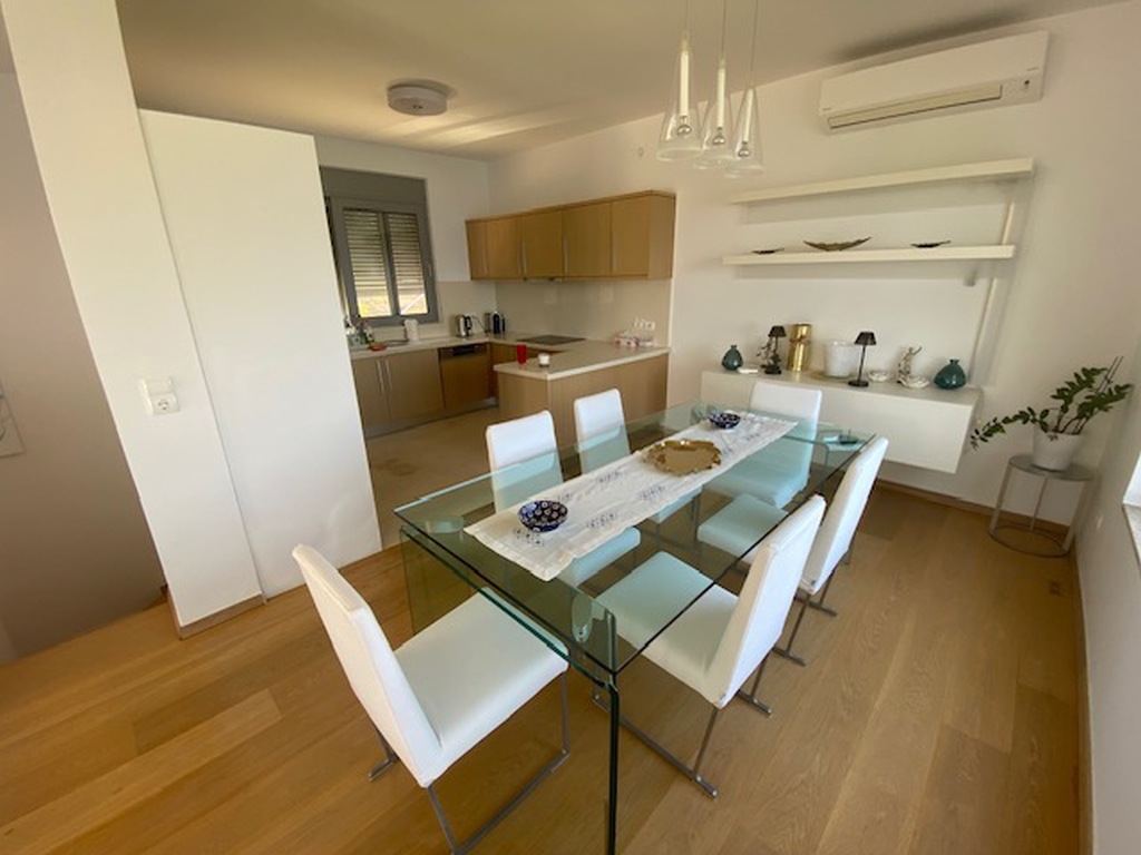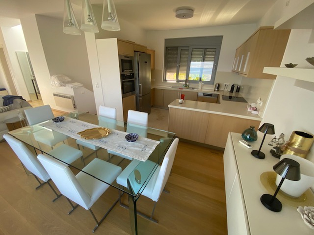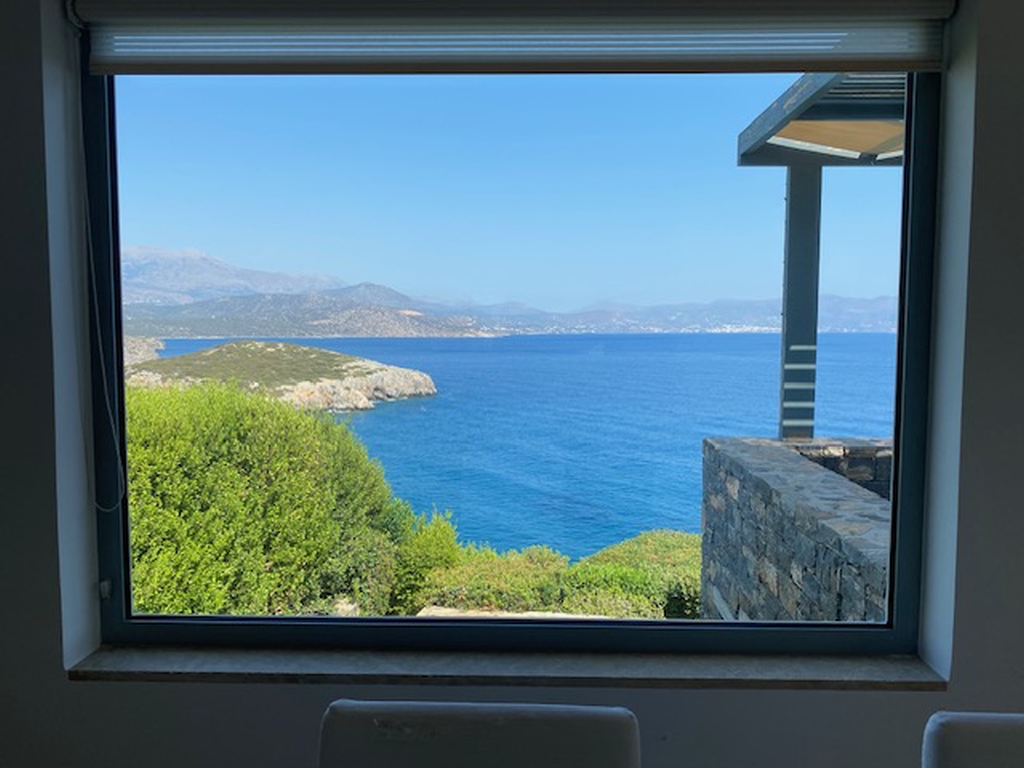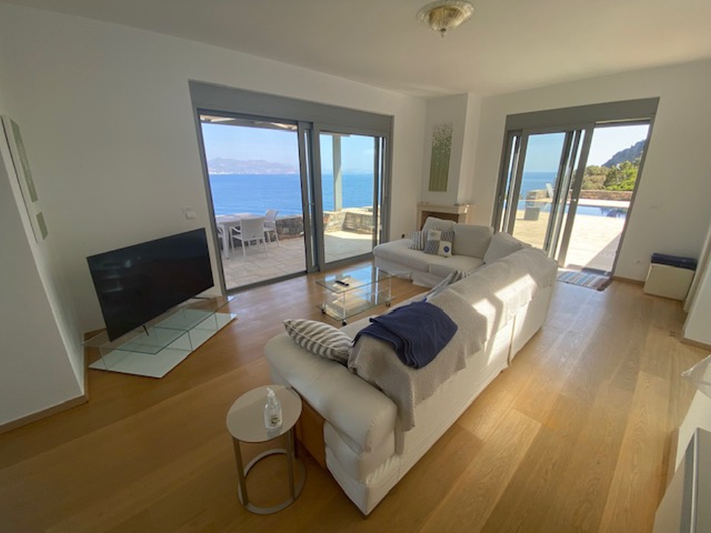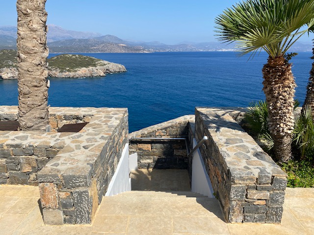 Three bedroom furnished seafront villa with pool located in a guarded luxury complex, on a private peninsula in the Eastern part of the island of Crete. The luxury villa is 180m2 on a plot of 2.100m2 with 50 meters of coastline. It is 12 km from the amenities of the picturesque Agios Nikolaos and only 72 km from the international airport of Heraklion. The first floor has an open living and dining area, a fully equipped modern kitchen and a WC. The ground floor includes three bedrooms and two bathrooms. The main rooms have French-style doors that open onto the Cretan paver, with covered verandas leading to the private infinity pool and the outdoor seating area. The view of Mirabello Bay is indescribable. In addition, there is a parking area and wonderful landscaped gardens where stone steps lead to the sea. The very high quality of the materials both for the construction and the furnishing in combination with the natural beauty of the location and the surrounding area, make it an ideal residence to live the life you dream.