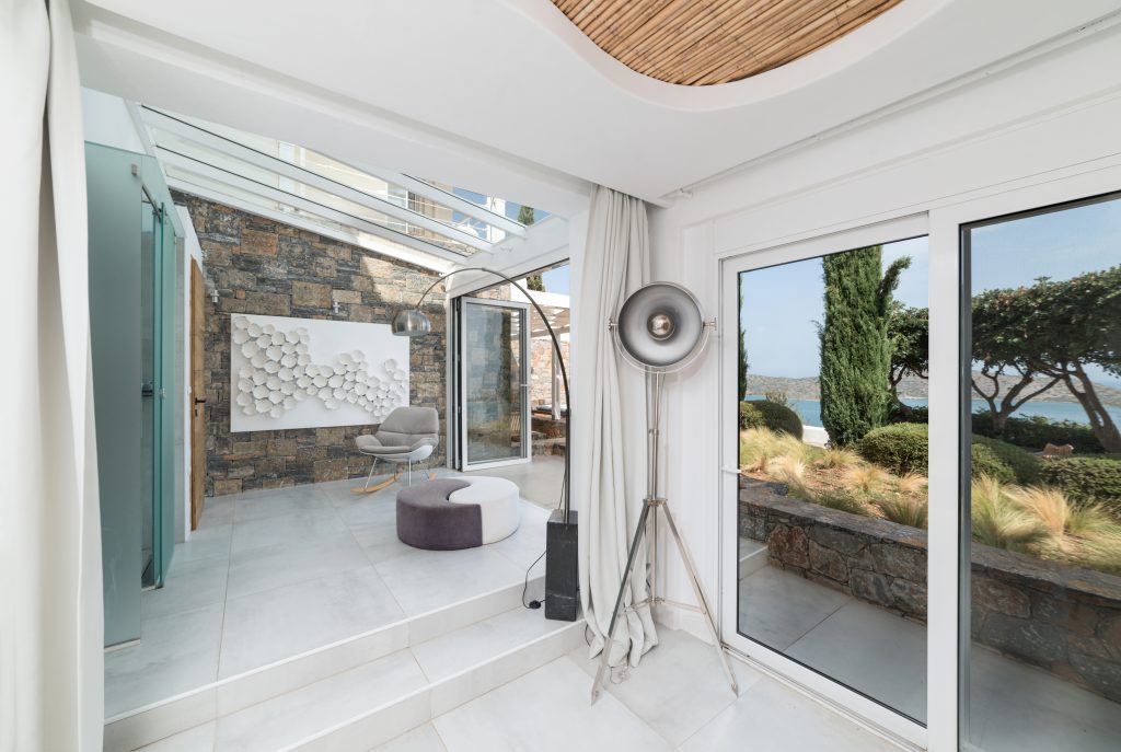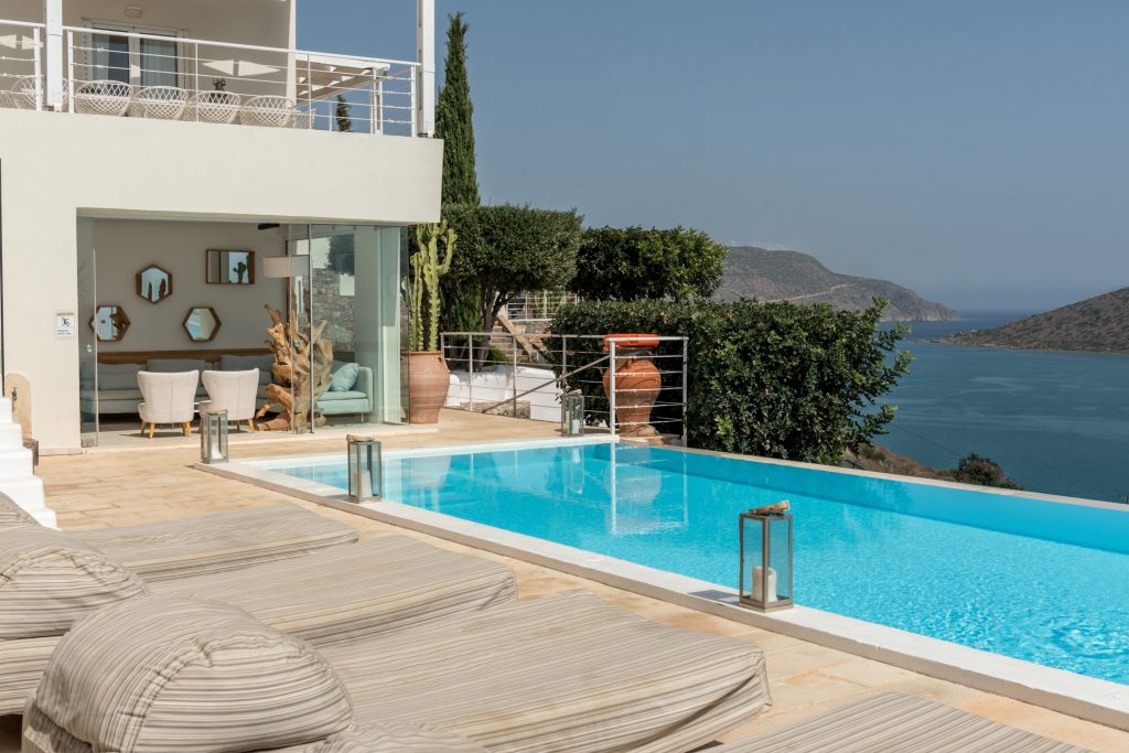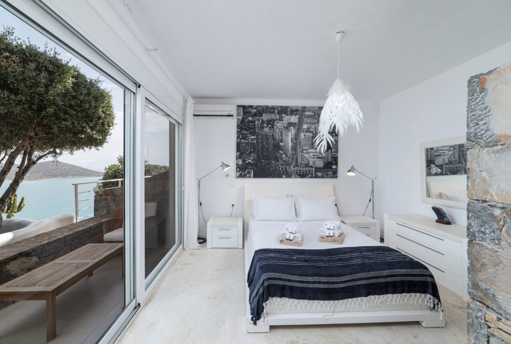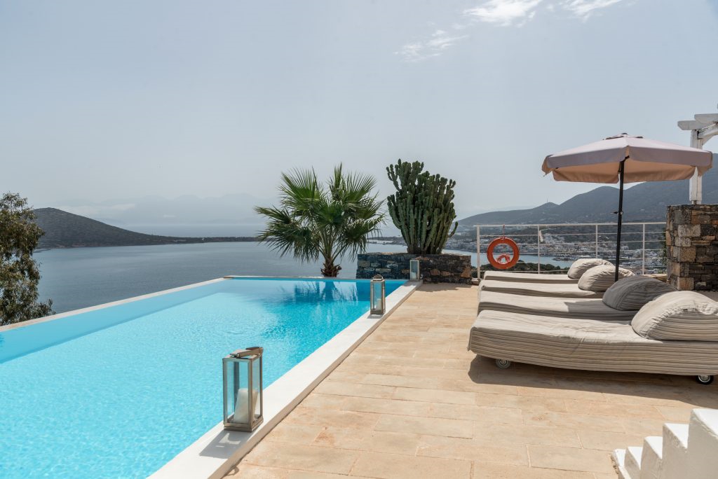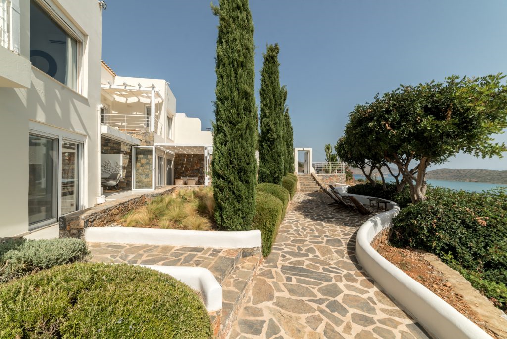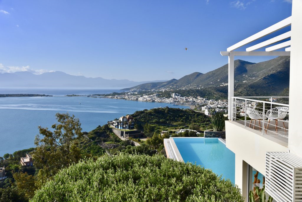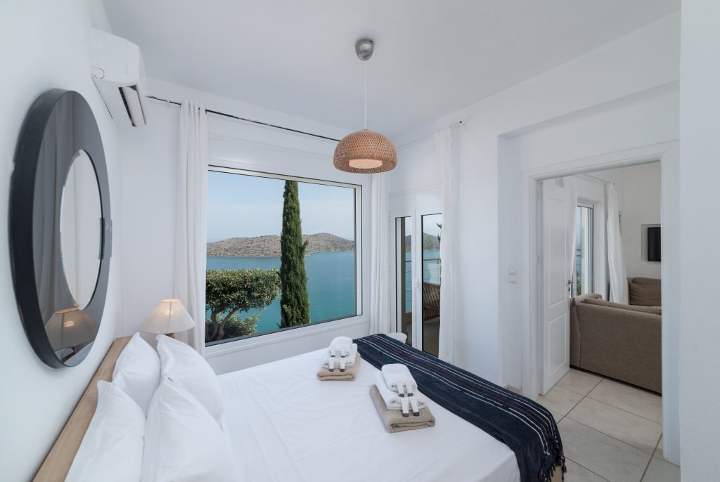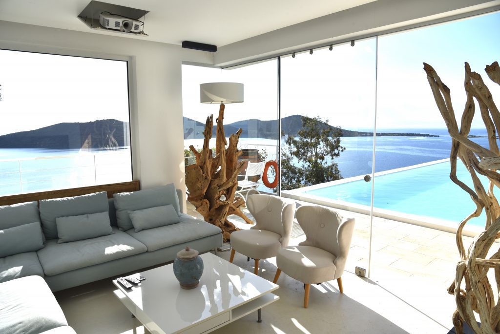 In a superb location, a luxury villa of 212m2, on a 2.200m2 plot with five bedrooms is available for sale. It is only 400 meters from the sea, 1.5 km from cosmopolitan Elounda and 10 km from the picturesque town of Agios Nikolaos in Eastern Crete. The ground floor opens to a lounge ideal for relaxing with a kitchen leading to the terrace and a stunning outdoor space. It also consists of two bedrooms, one of which has an internal bathroom. On the same level there is also a small living room, a small kitchen, the laundry area and a W.C. All areas throughout the villa offer a magnificent view of Elounda bay. Stairs leads to the first floor of the villa which includes two bedrooms with private bathrooms and one bedroom with its own sitting area and a bathroom. Under the stairs there are two bunks and next to them a W.C. The villa is air-conditioned, with central heating, aluminum frames, alarm, safe and storage spaces. Outside there are shaded pergolas with a dining and living room ideal for relaxation offering unobstructed views. Gardens and terraces with the pool and an outdoor jaccuzzi form a dreamy space. It also includes a parking space and a BBQ. It is a villa designed with the specifications of a luxury residence, having all the modern comforts and facilities that would undoubtedly make anyone proud of their choice.