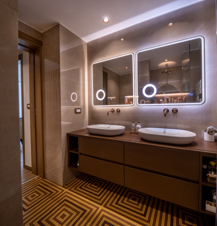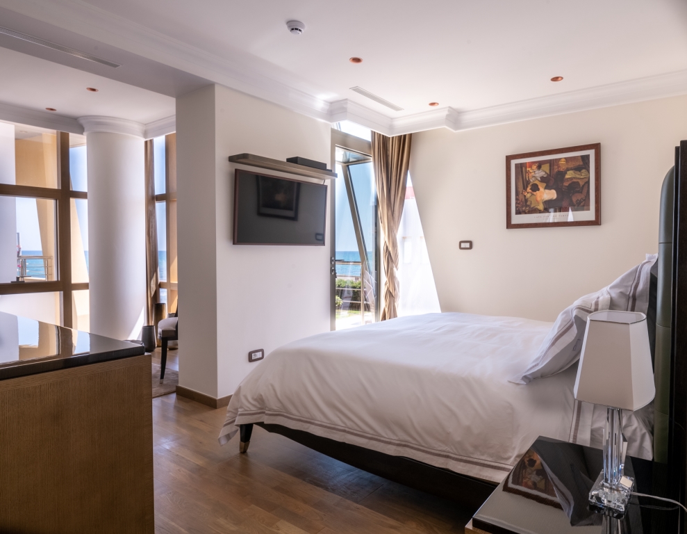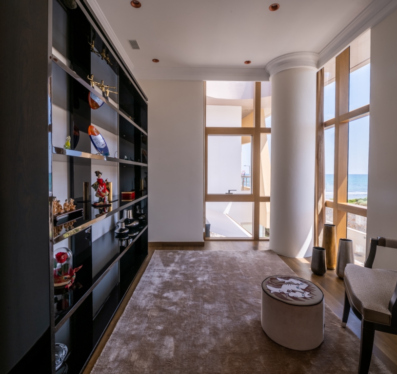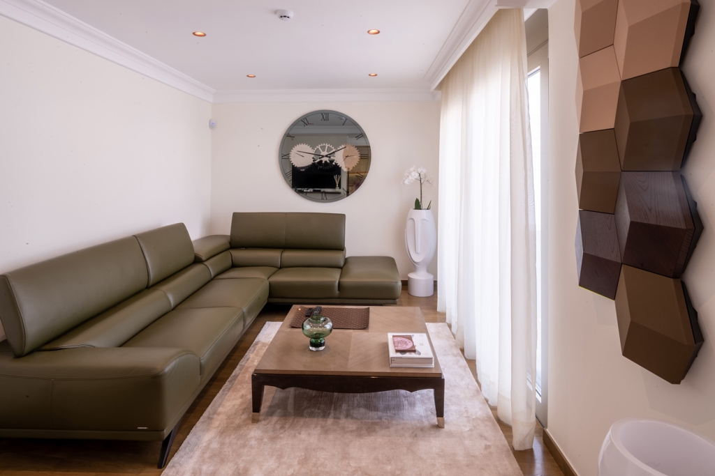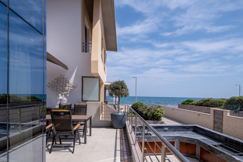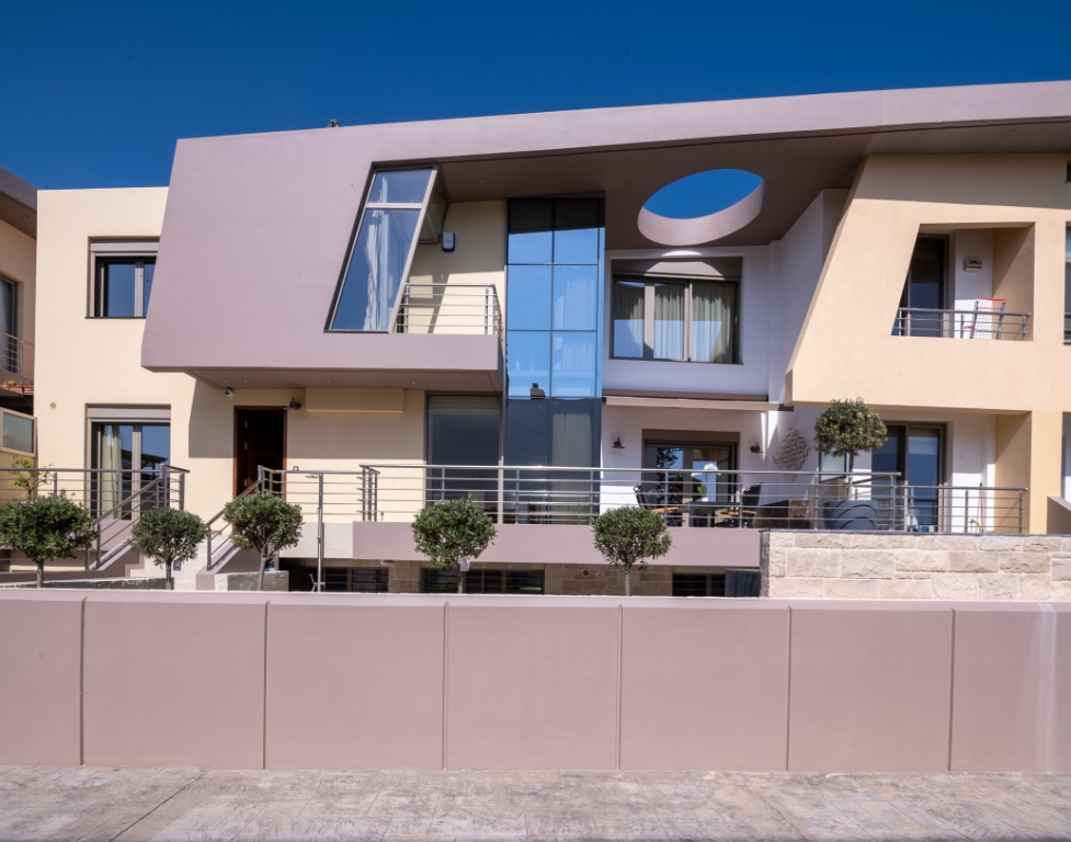 Excellent luxury villa of 220m2 is available for sale in the area Kokkini Hani close to Heraklion. It is located next to the sea as it is separated from it by a coastal road and 14 km from the city of Heraklion. It is developed on three levels where the architectural design was based on the utilization of all spaces. On the ground floor which characterized by the mosaic and wooden floor there is a comfortable dining room, a living room and a fully equipped kitchen. A wooden staircase leads to the upper level which consists of two bedrooms, one of which is a children`s bedroom and the other has an internal bathroom, a dressing room and a private spacious living room. On the same floor there is another bathroom and an auxiliary library in the hallway. On the lower level there is a guest room, a storage room, parking and a laundry room. The ground floor areas have direct access to the outdoor areas where there are paved paths and a comfortable bbq area. The villa is part of a building complex and is enclosed with walls. It is provided air conditioning, security cameras, fire detectors, solar panels and is equipped with energy saving devices . Built with the best materials, modern construction with specifications of a luxurious permanent or holiday residence offers a unique view of the Cretan Sea and would undoubtedly make anyone proud of their choice.