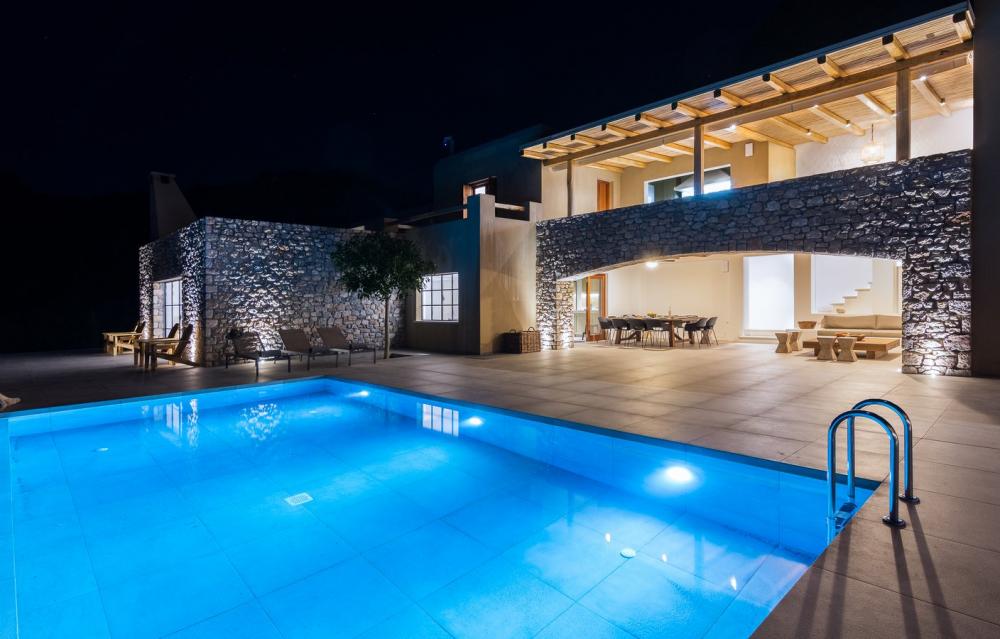 Prestige Mer villa, construite sur un terrain de 27000m 2 . La villa est construite en - deux unités distinctes, unifié par une Ethrion.