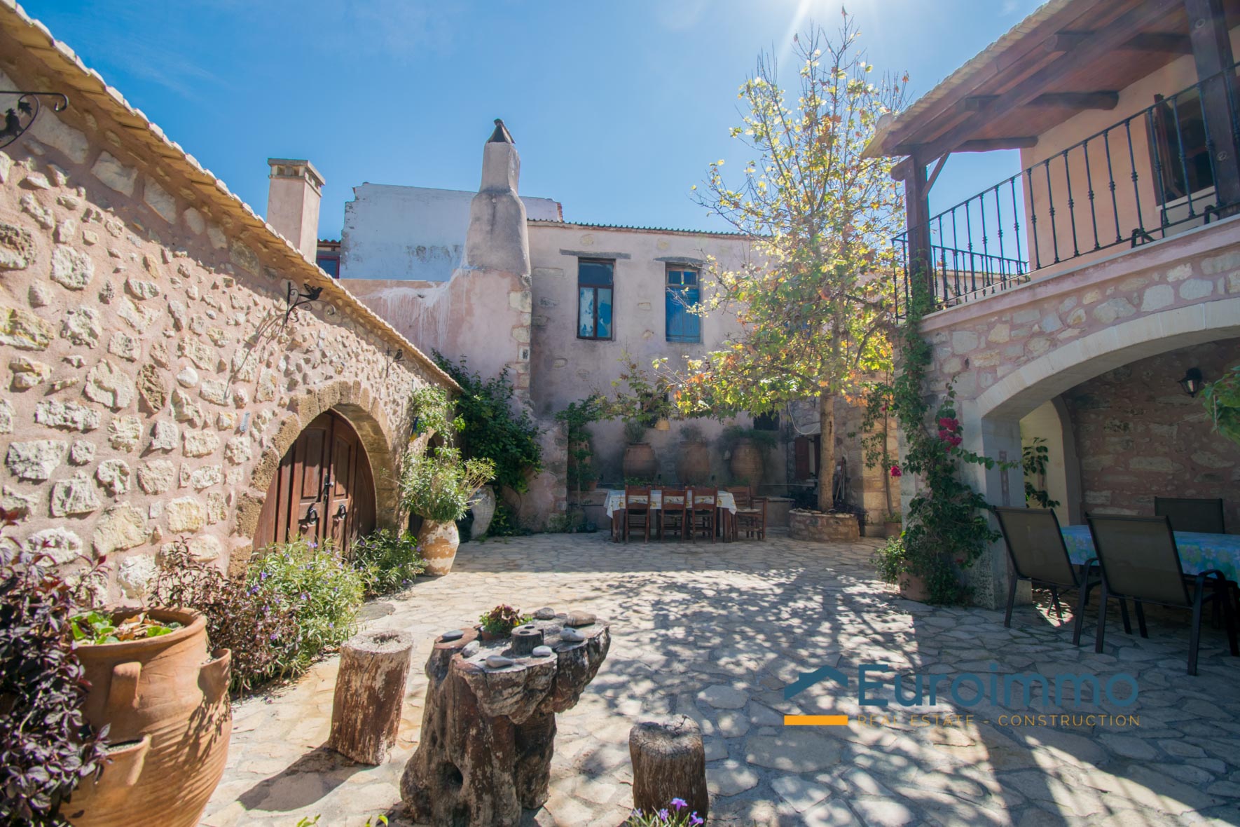 Cette charmante propriété est située derrière des murs épais et une vieille porte au milieu du village. Sur une ancienne ferme, la famille propriétaire a réalisé son rêve. Derrière une vieille porte vénitienne se cache une cour intérieure, conçue dans le style crétois régional, avec 2 fermes crétoises magnifiquement rénovées. Une piscine et un jardin méditerranéen joliment aménagé avec beaucoup de plantes et de fleurs complètent le tableau. Une tranquillité isolée et une atmosphère cultivée parfaite pour se détendre, voilà ce à quoi vous pouvez vous attendre ici.