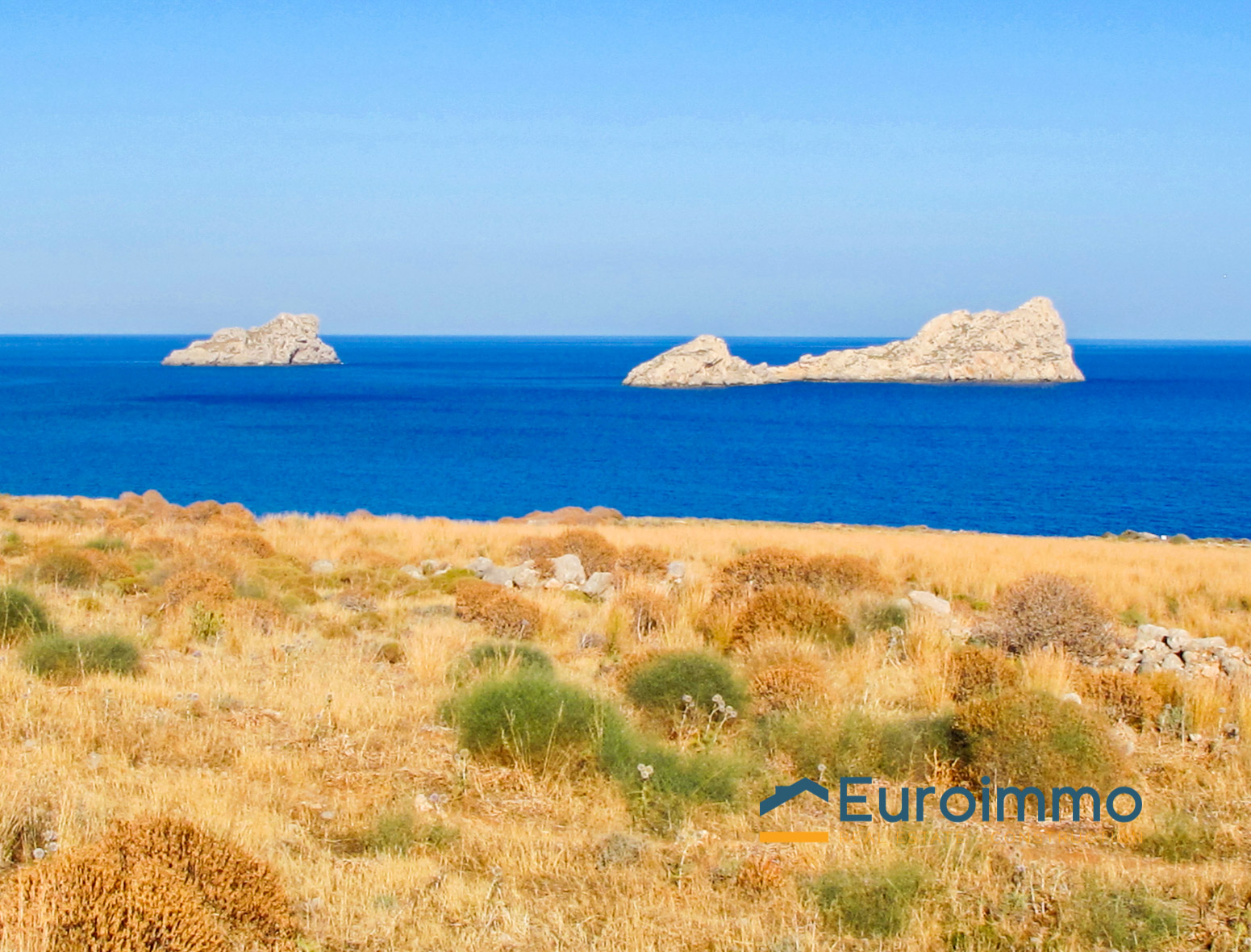 Byggetomten til salgs har et samlet areal på 5.000 kvm, med totale byggerettigheter på 205 kvm. Det ligger i Xerokampos-regionen, nær en sandstrand, uavhengig og har panoramautsikt over havet. Ligger i en avstand på 45 km fra Sitia.