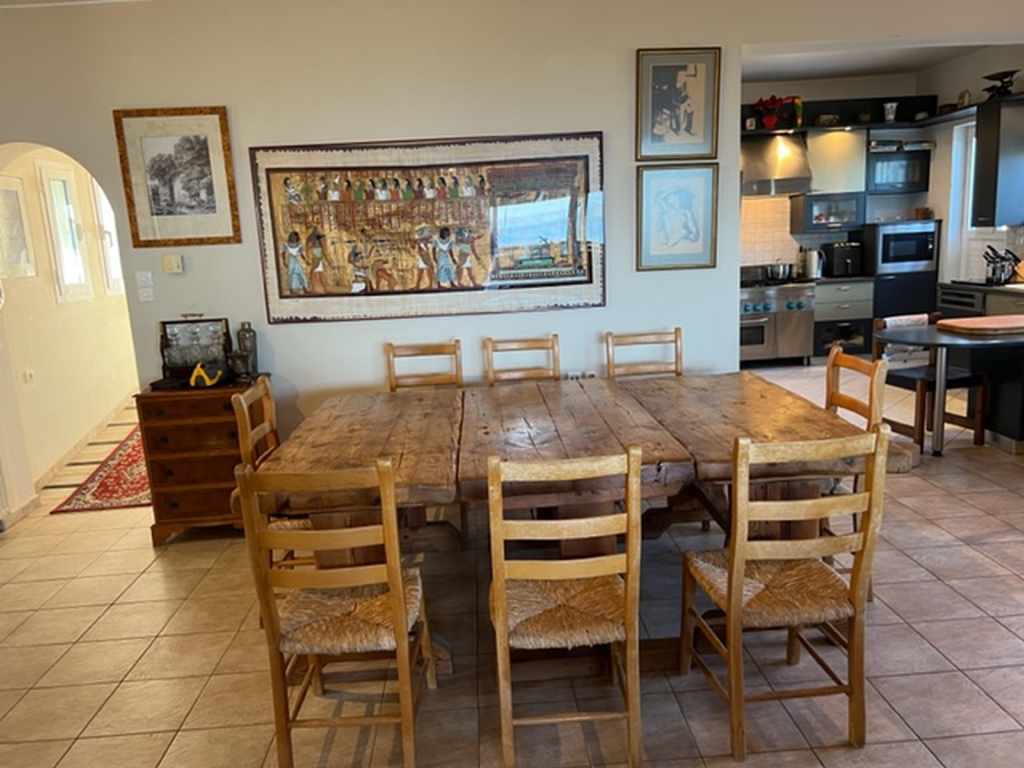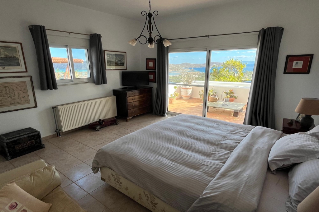 Ligger i Elounda, Øst-Kreta, er dette virkelig enestående huset med panoramautsikt over Mirabello Bay og Spinalonga til salgs. Denne idylliske beliggenheten ligger bare 800 meter fra butikkene og restaurantene i fiskerlandsbyen Elounda og kun 8 km fra byen Aghios Nikolaos. I en forhøyet posisjon har denne 280 m2 store eiendommen på en 4.500 m2 stor tomt uhindret vidstrakt utsikt. Fra den 60 m2 store salongen med funksjonspeis fører skyvedører i glass til sommerserveringen og det 15 x 5 meter store oppvarmede svømmebassenget med stor terrasse og dusj. Denne drømmen om et designerkjøkken er stilfullt utstyrt med dobbel gasskomfyr, avtrekksvifte og alle moderne bekvemmeligheter, stor tilstøtende spiskammer og dør til terrasse. Hovedsuiten har et soverom med dører til en privat terrasse, komplett bad med badekar og separat multijet-dusj, walk-in-garderobe med garderober og et stort utstyrt arbeidsrom eller ekstra soverom med gjestetoalett. I en annen del av huset er to en-suite gjesterom med terrasser. Den 80 m2 store kjelleren inneholder badstue, dusjrom, utstyrt bod og vaskerom med vaskemaskin, tørketrommel, sengetøyshyller, fryser og ismaskin. Bassengets filtreringssystem, varmekjelen og oljelageret er i egen kjeller. Huset har luftkondisjonering og oljefyrt sentralvarme overalt, to telefonlinjer (tilkoblinger i alle rom), bredbånd, satellitt-TV, automatisk utvendig belysning, elektriske persienner, elektrisk inngangsport, bilport og flere parkeringsplasser. Med utsikt over sin egen olivenlund, fullfører de vakre, automatisk vannede, anlagte hagene med sitrus- og frukttrær og en vannfunksjon, denne idylliske settingen og gjør dette til et hjem å verne om og nyte.
